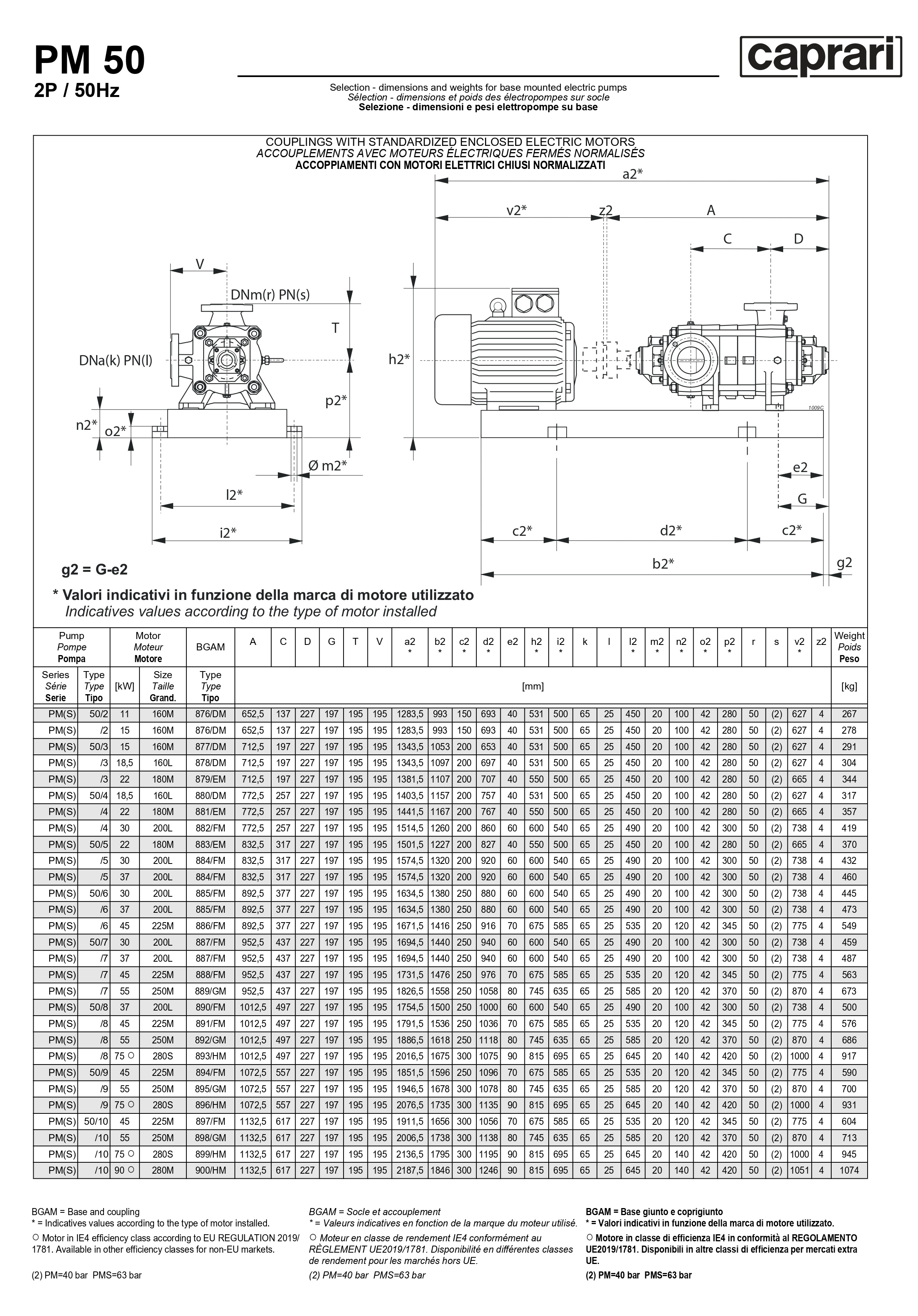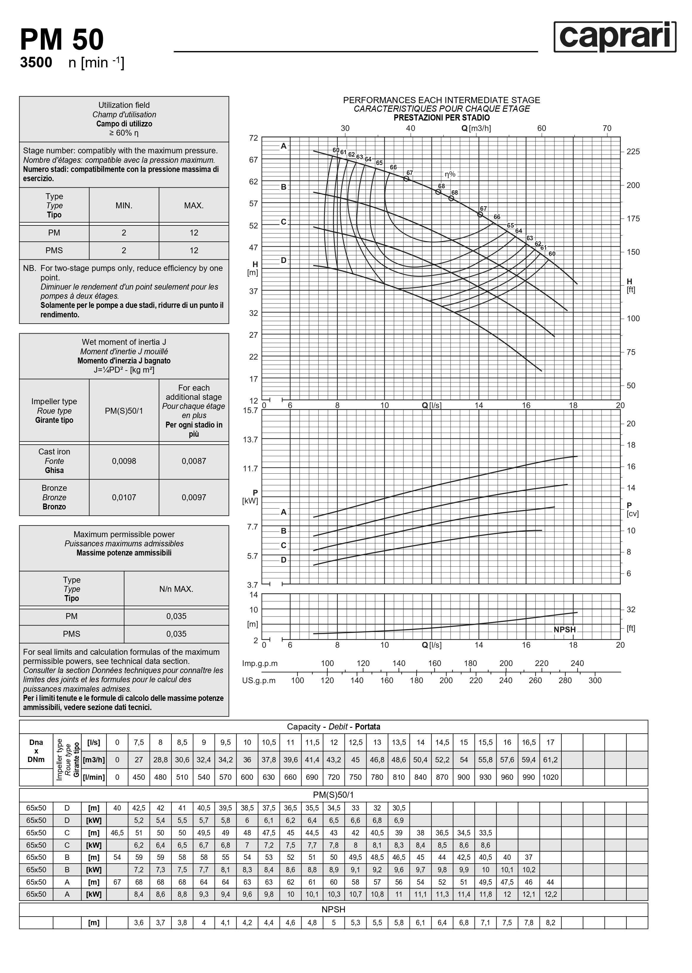 Горизонтальные многоступенчатые насосы высокого давления Caprari PM 50 3500