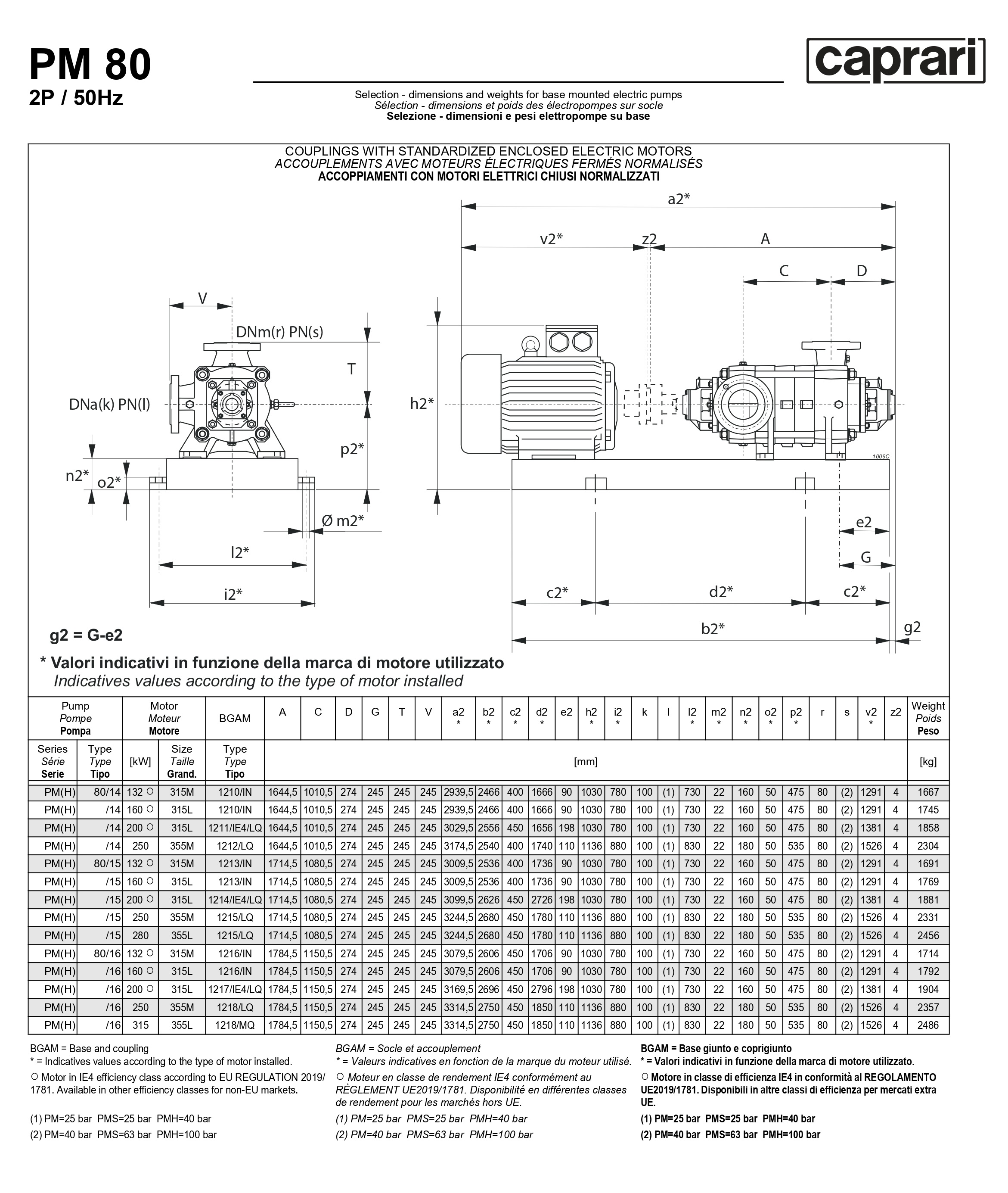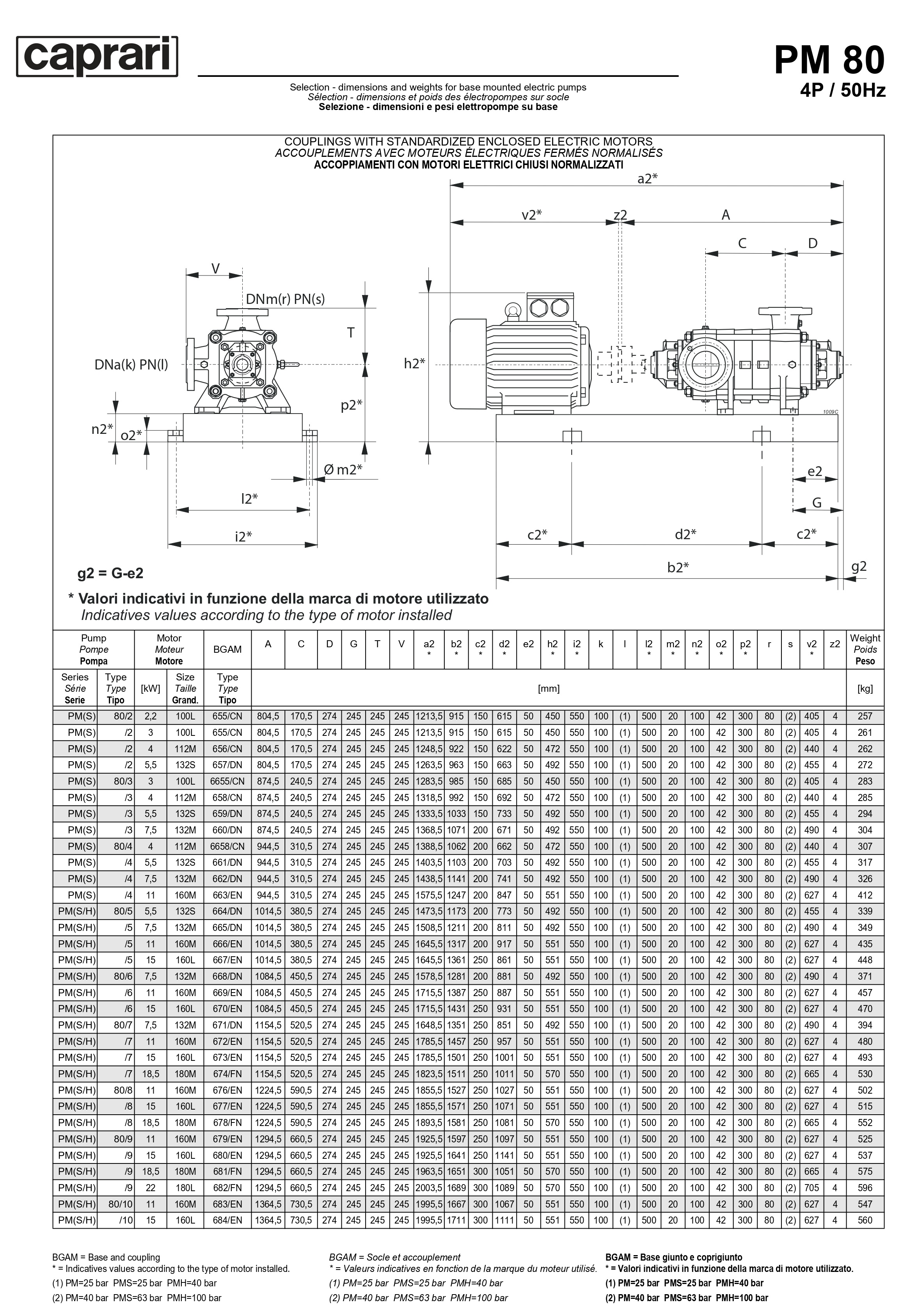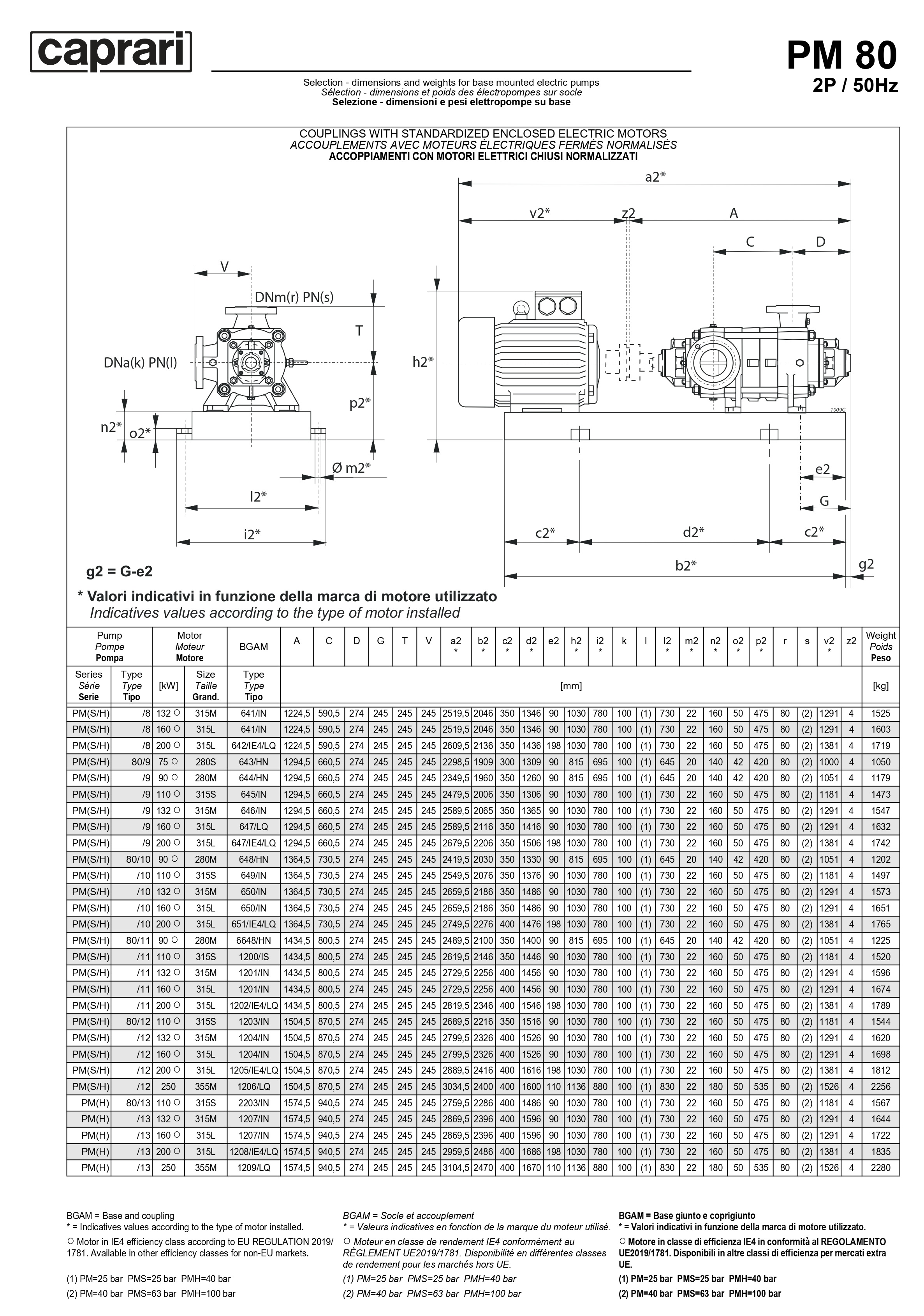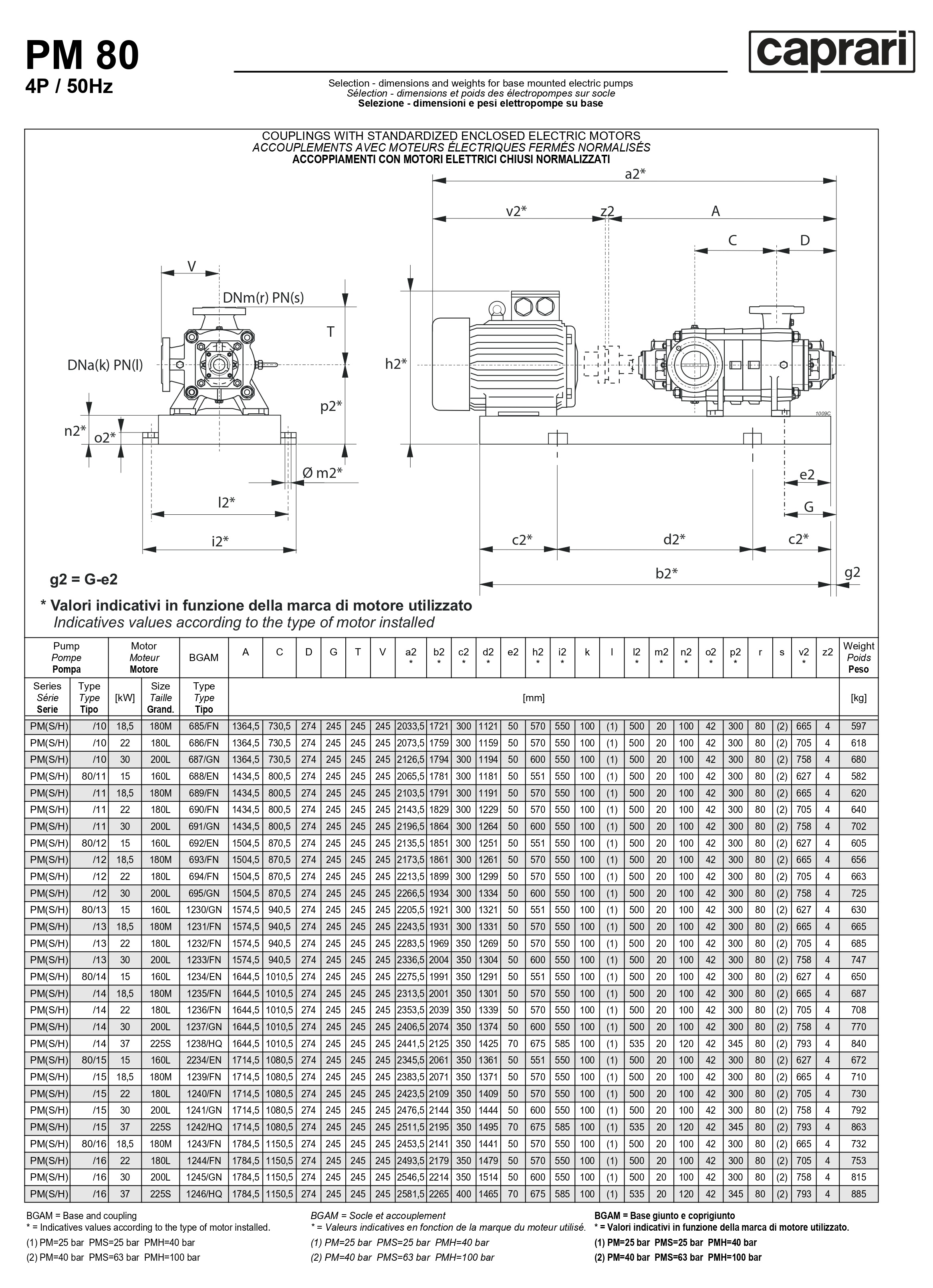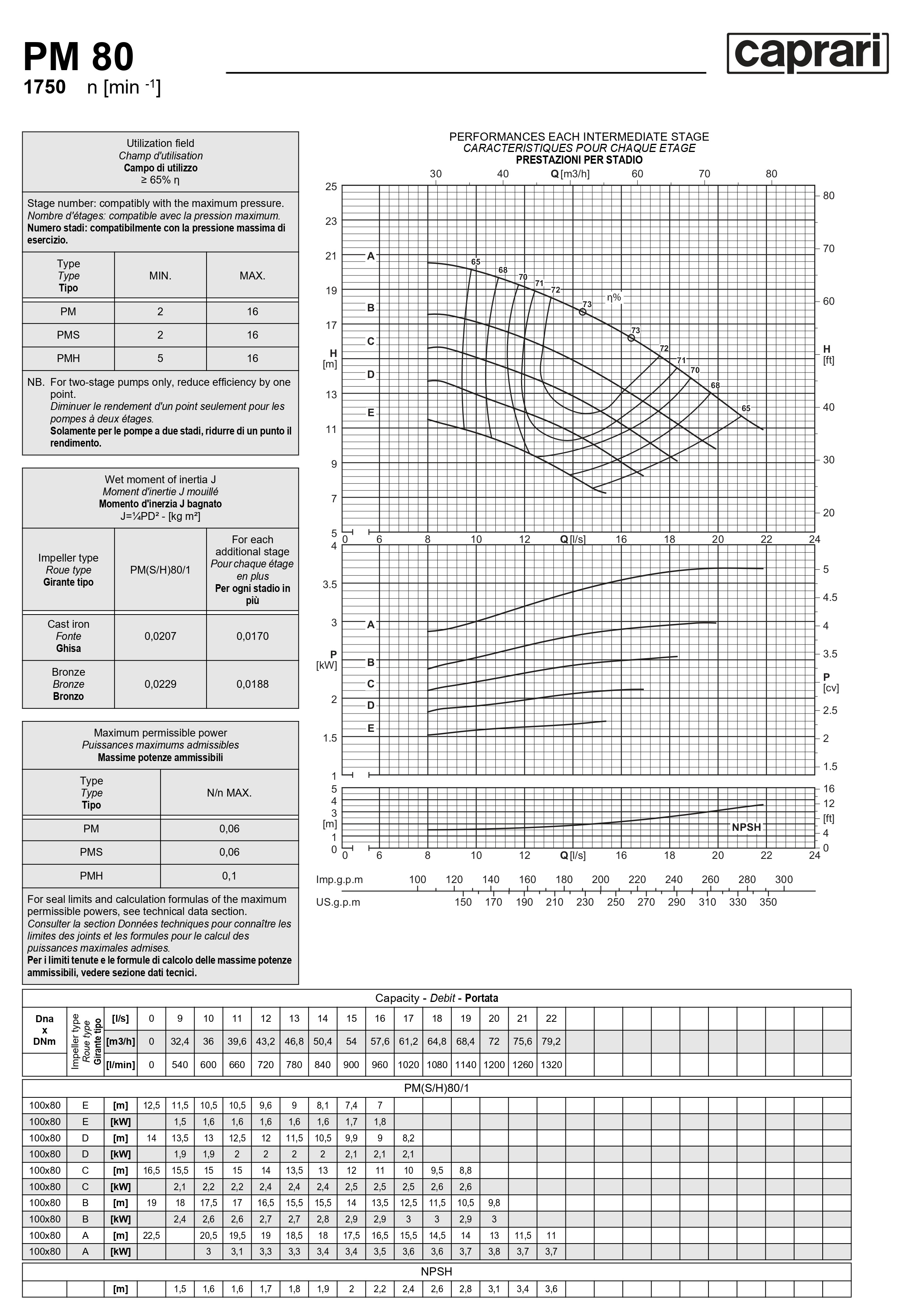 Горизонтальные многоступенчатые насосы высокого давления Caprari PM 80 1750