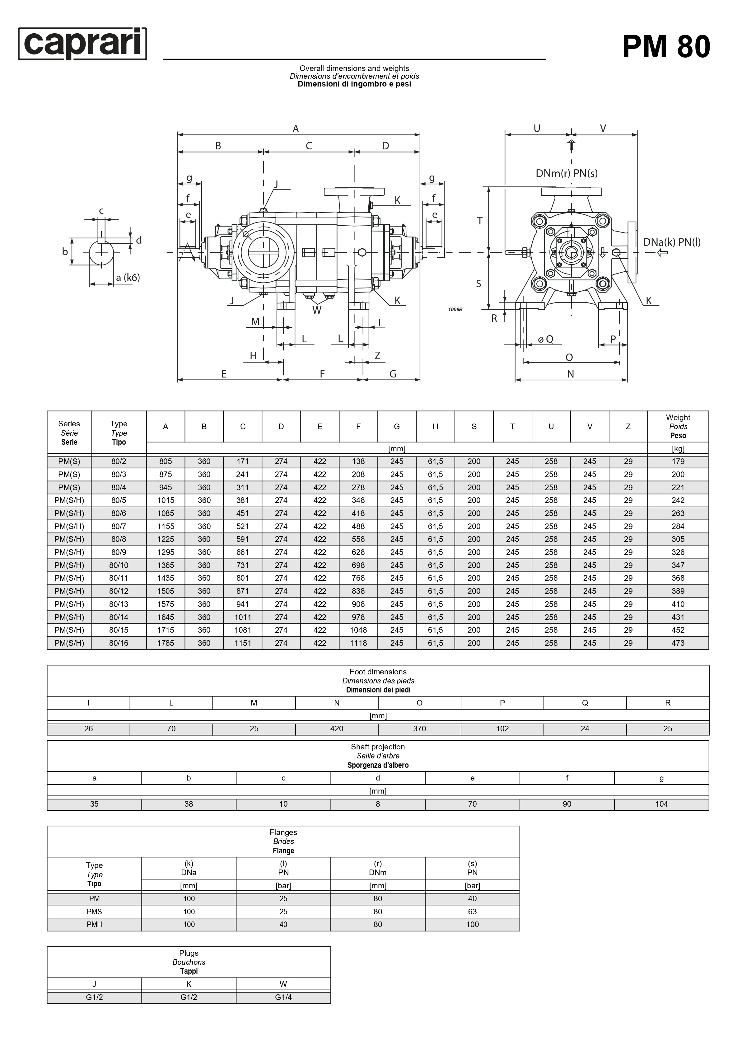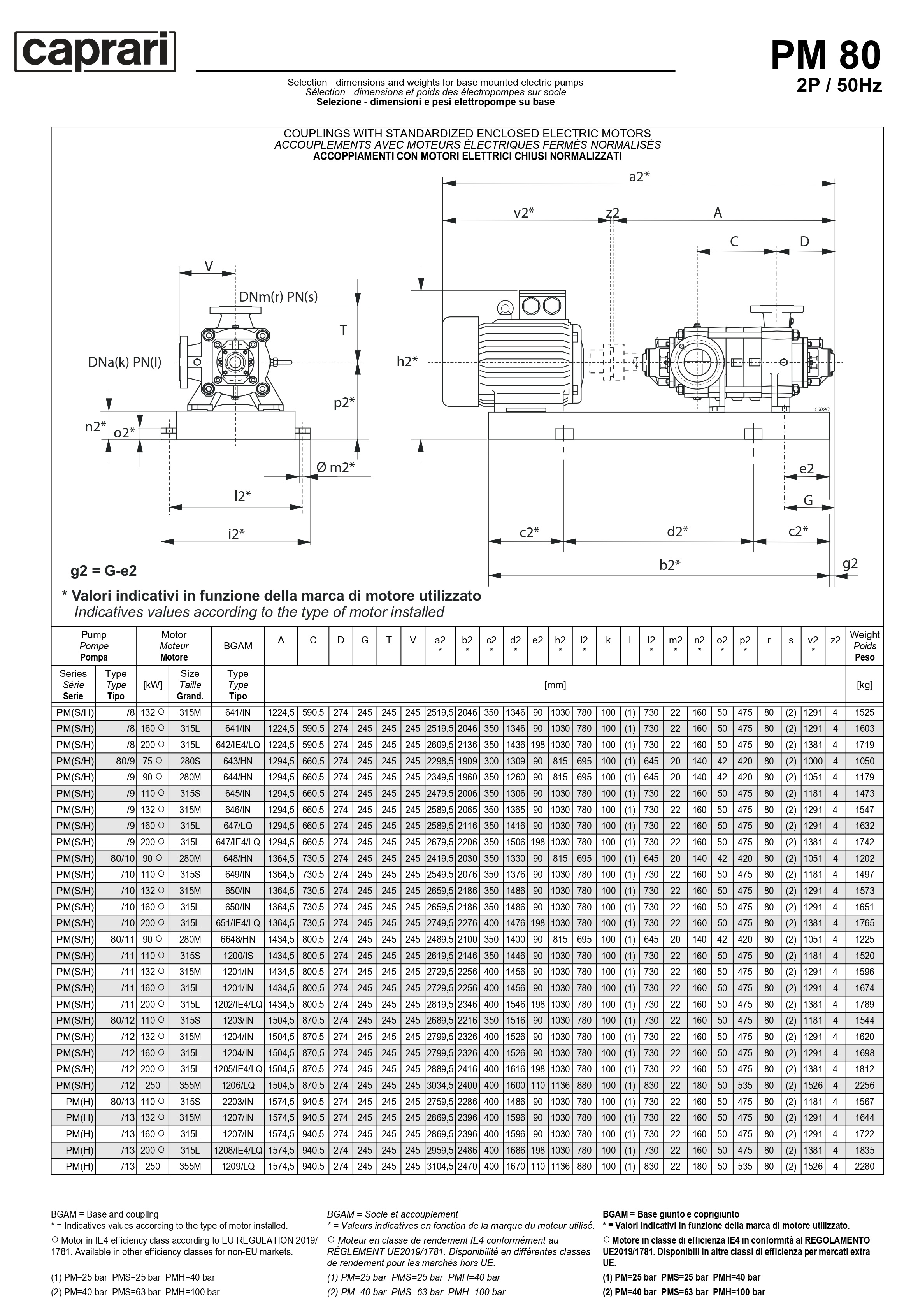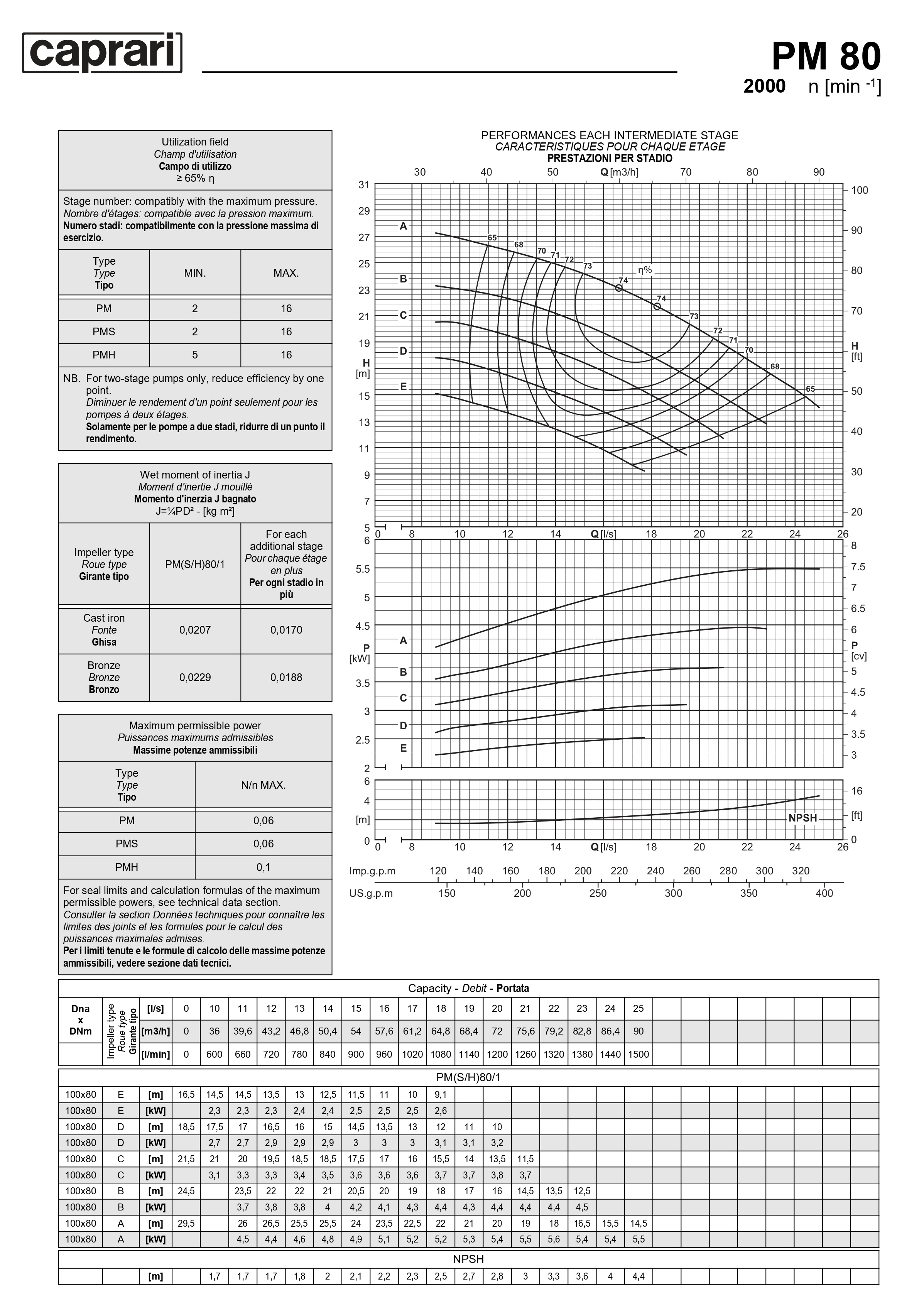 Горизонтальные многоступенчатые насосы высокого давления Caprari PM 80 2000