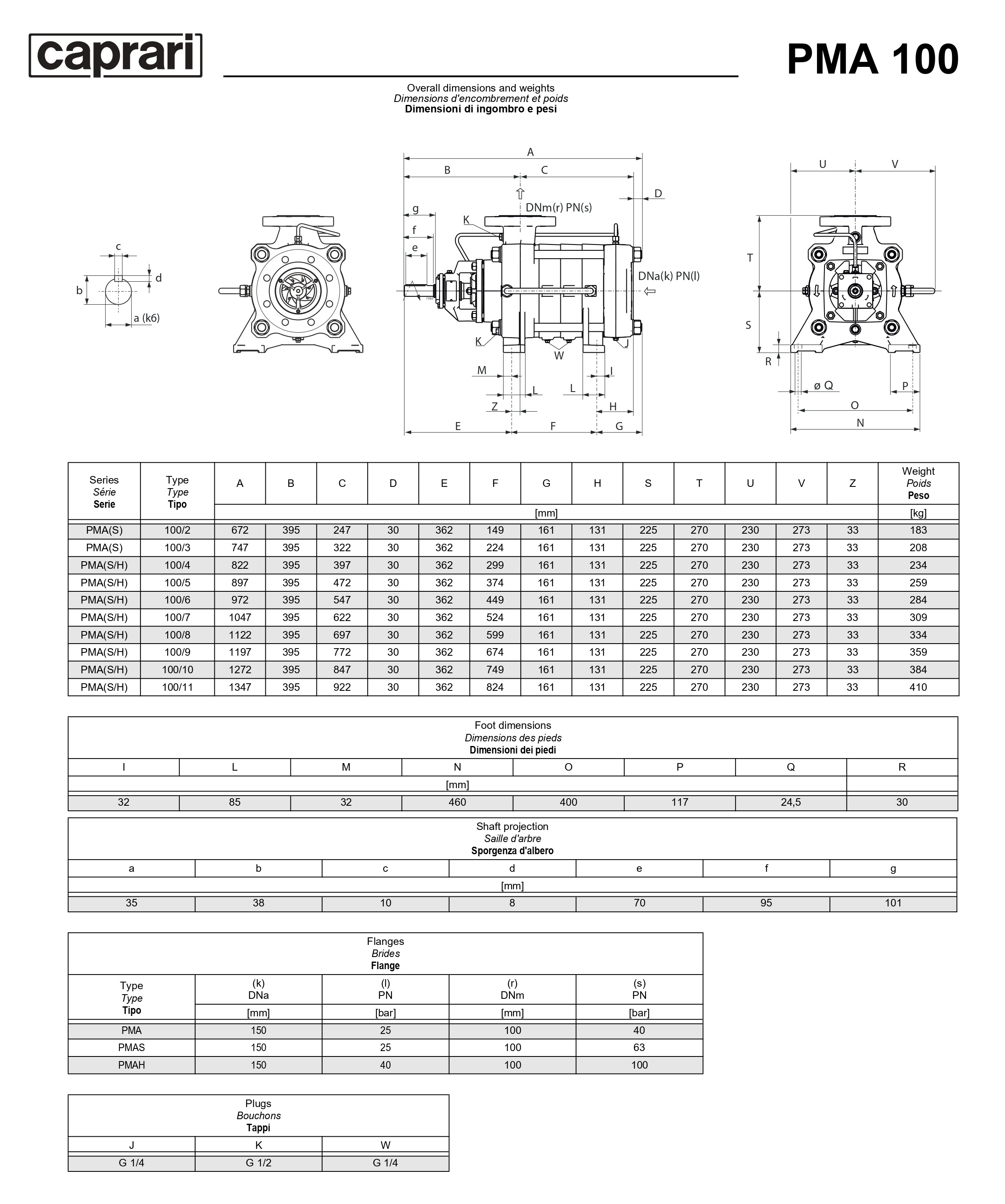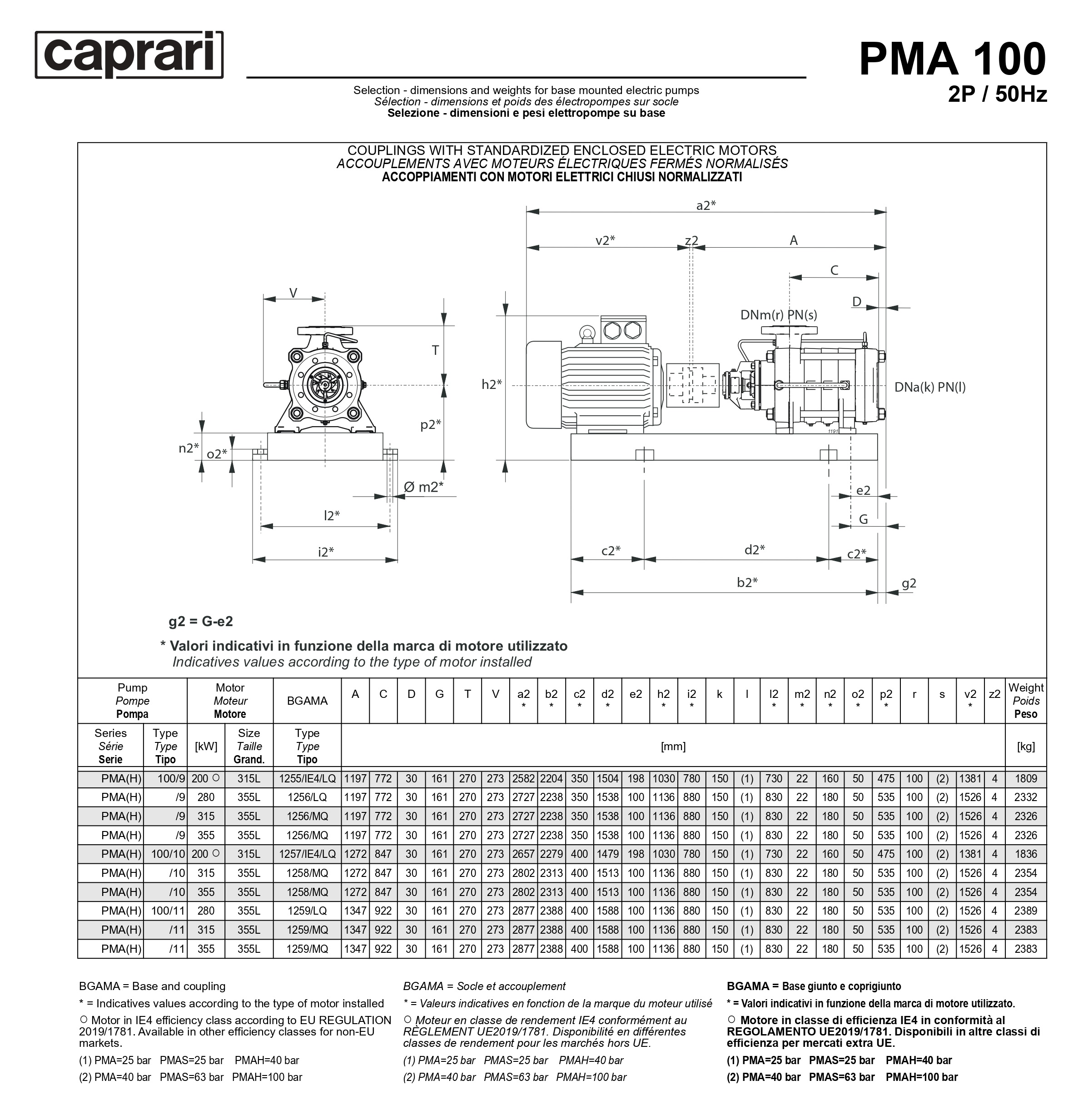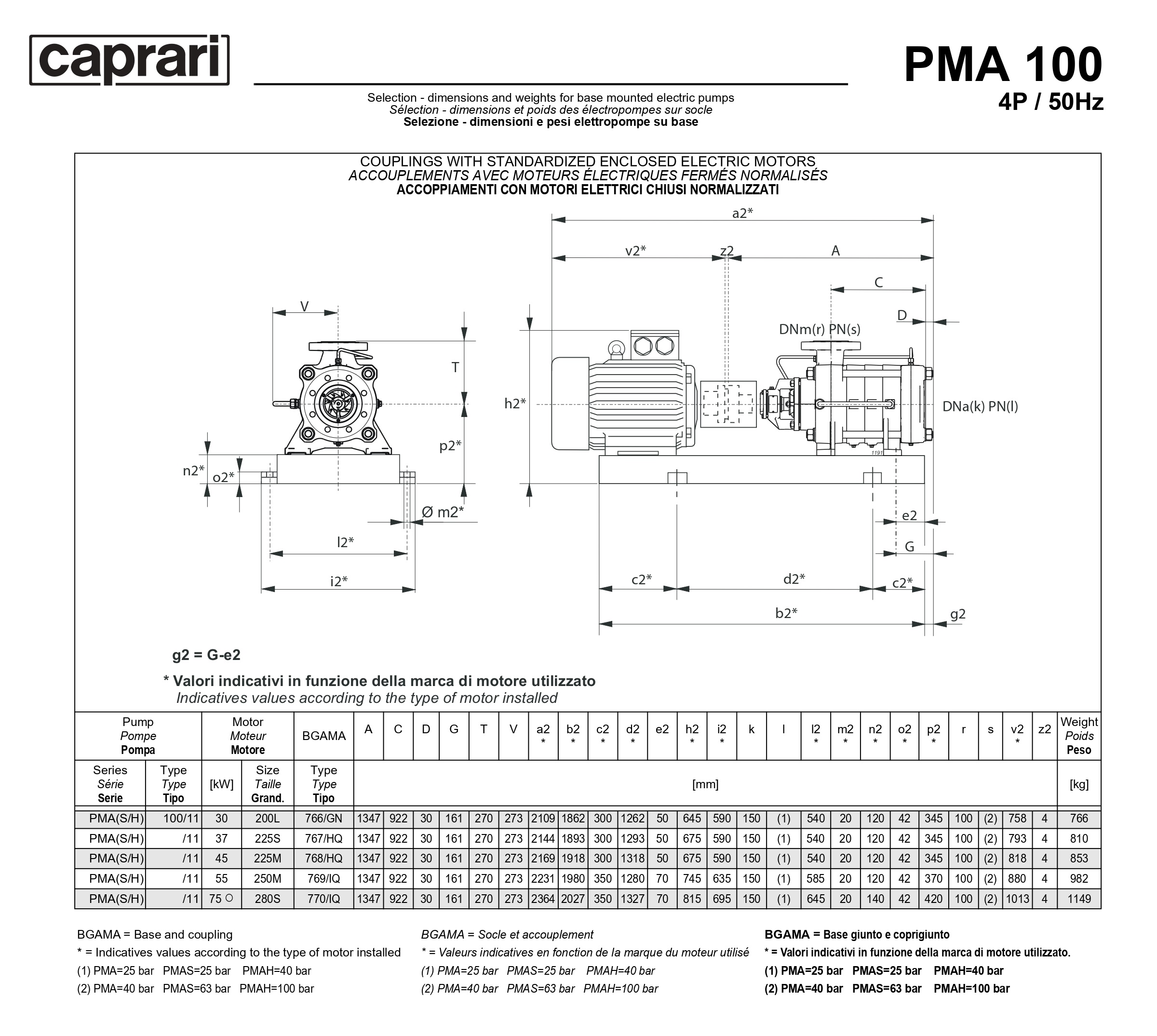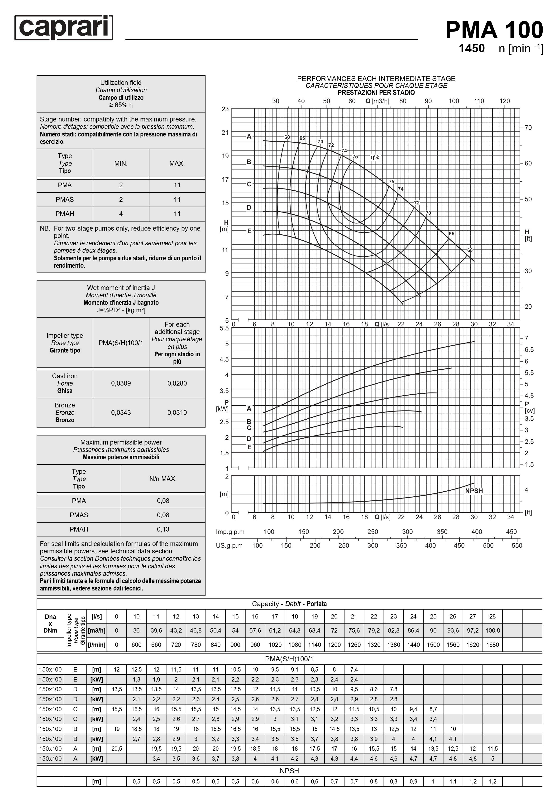 Горизонтальные многоступенчатые насосы высокого давления Caprari PMA 100 1450