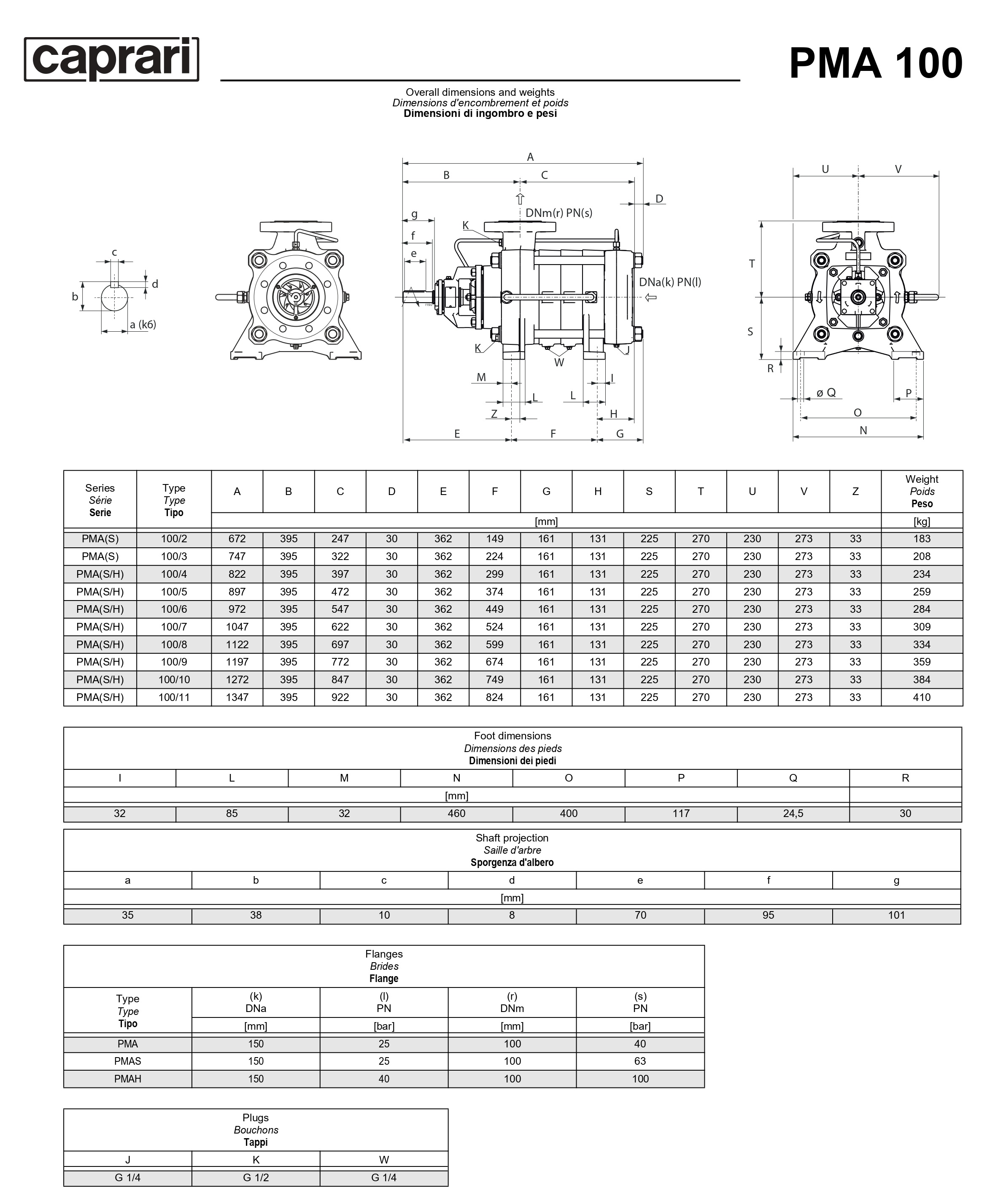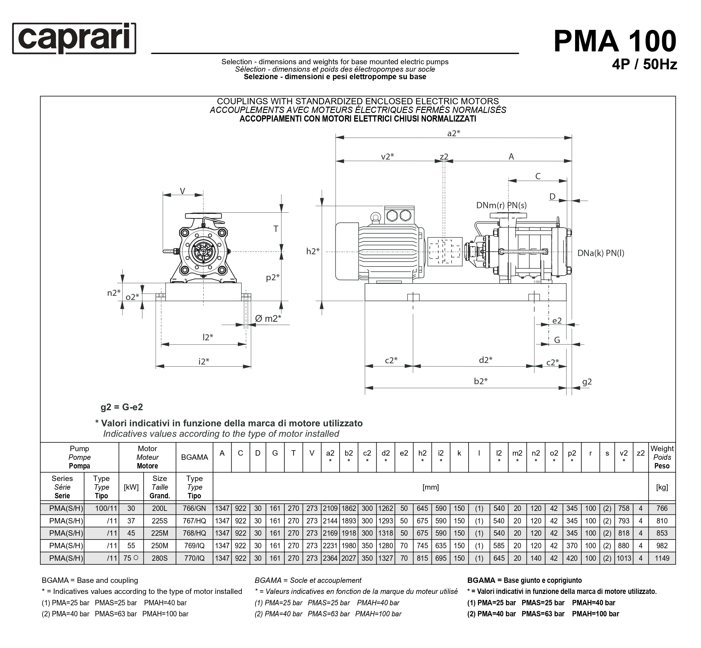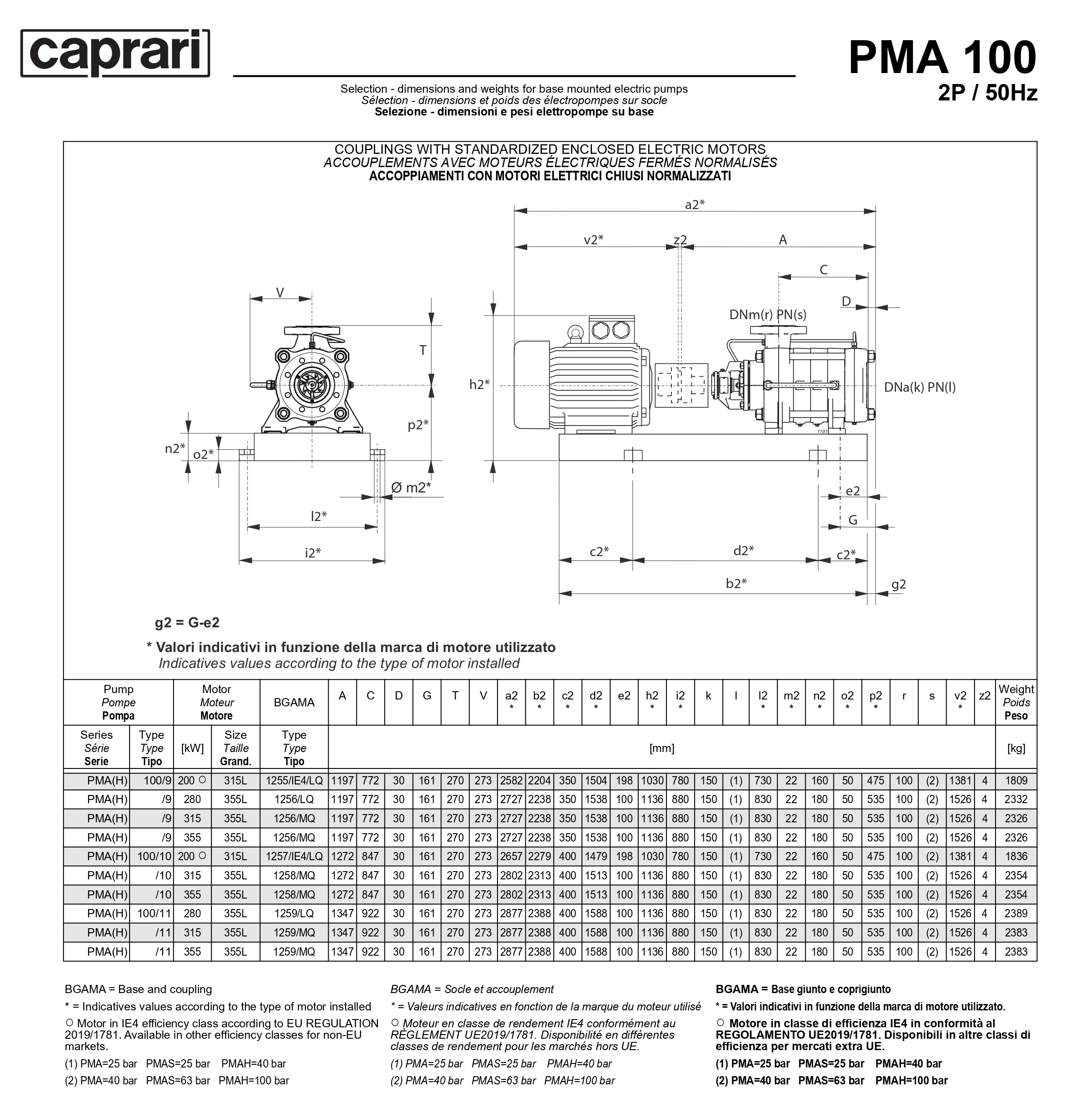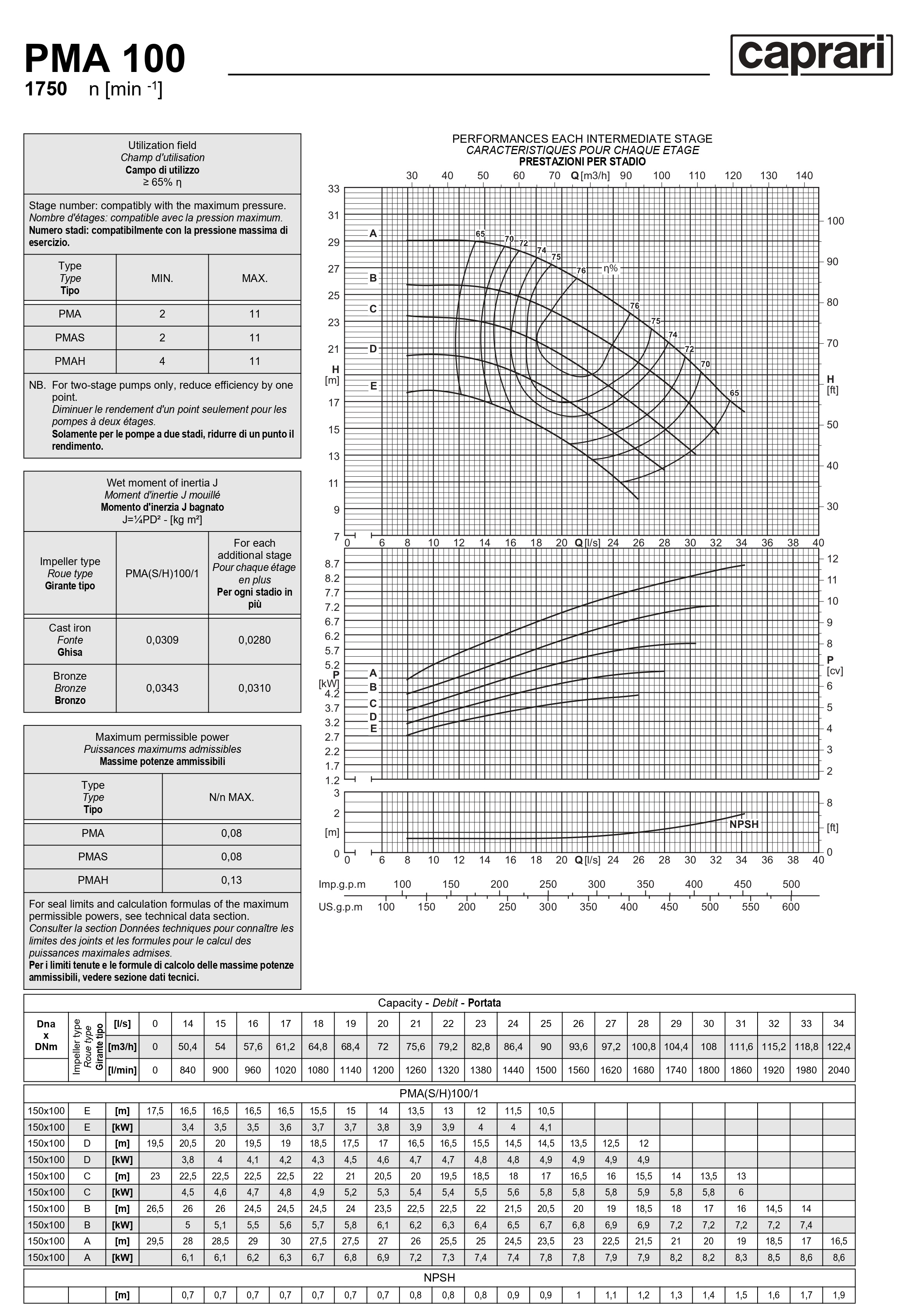 Горизонтальные многоступенчатые насосы высокого давления Caprari PMA 100 1750