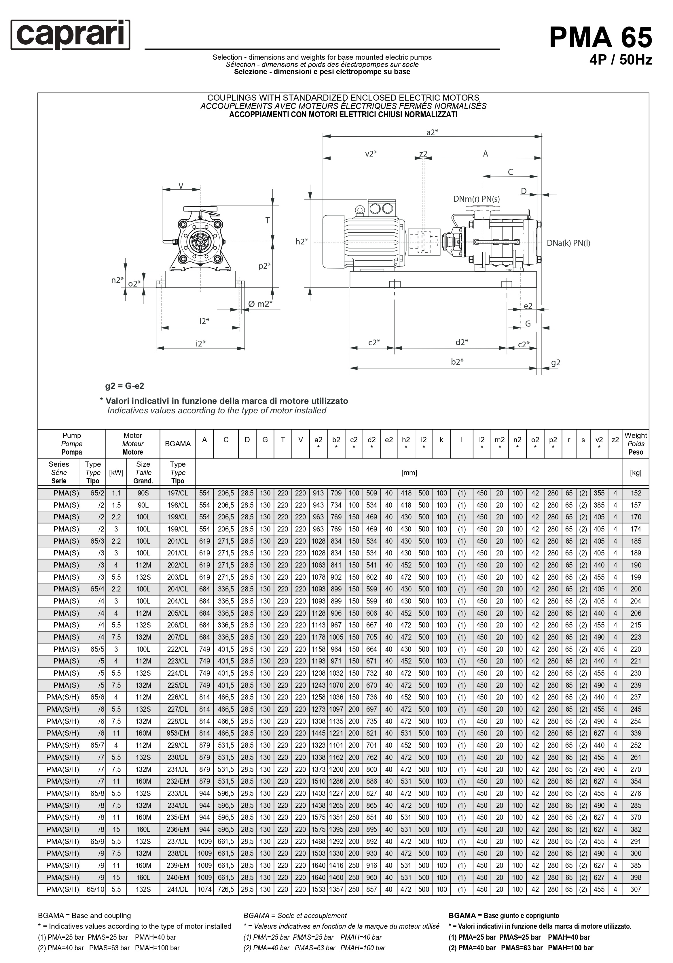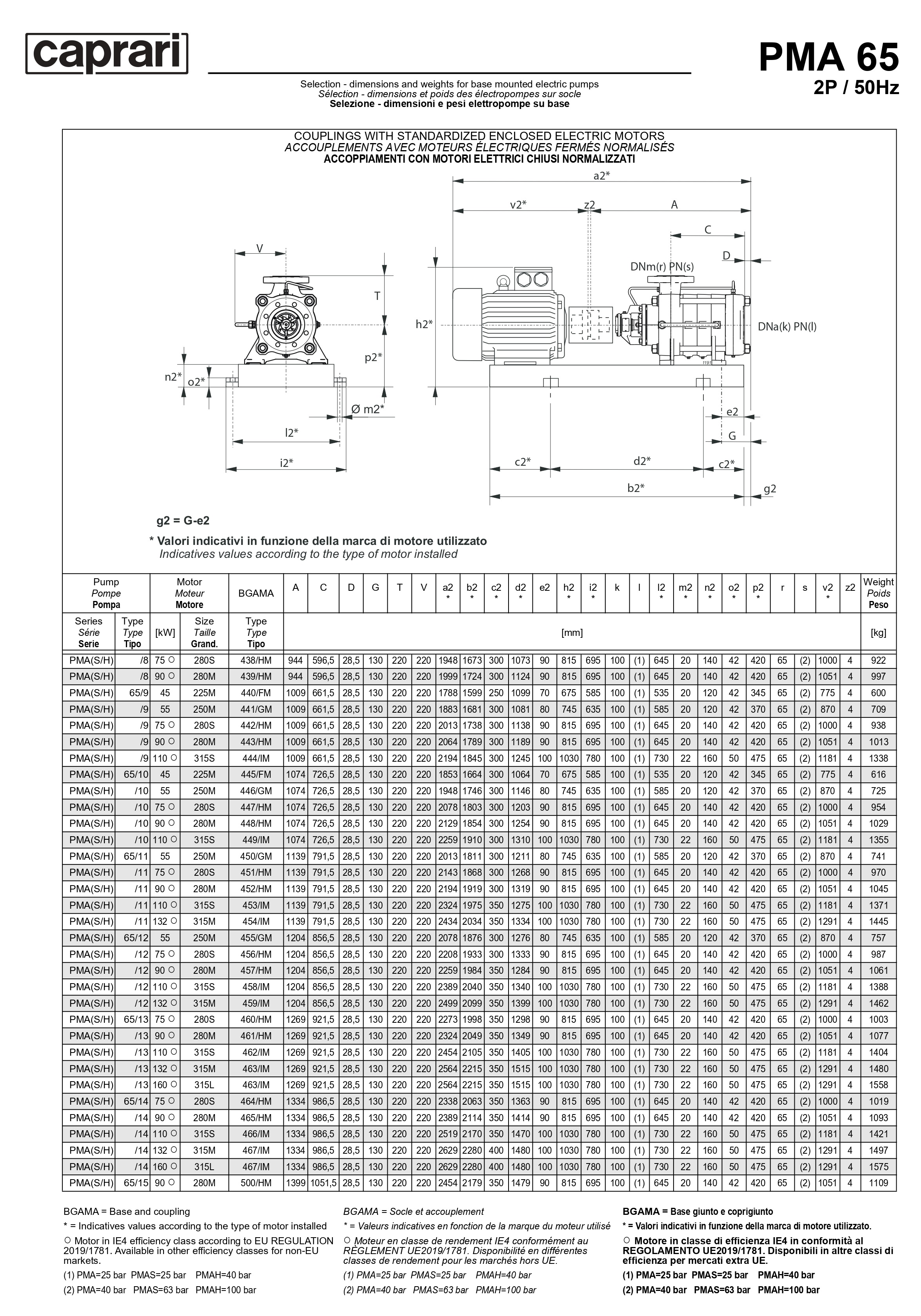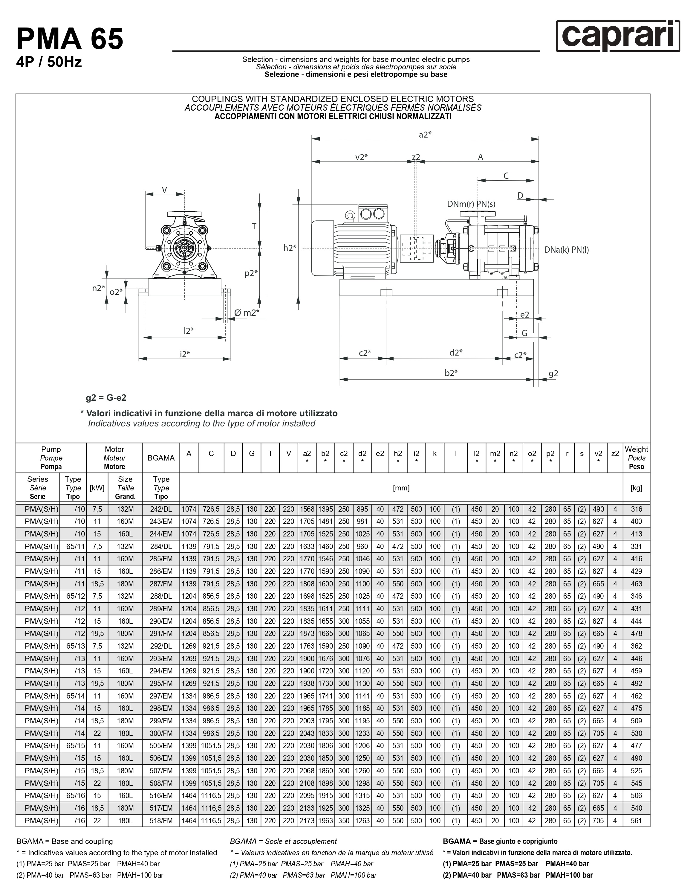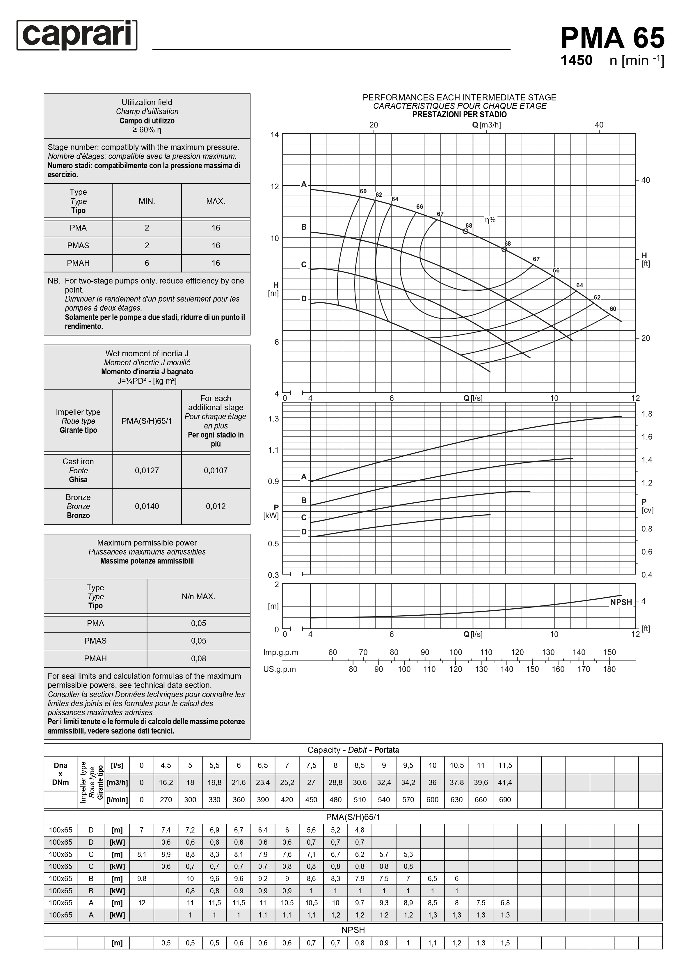 Горизонтальные многоступенчатые насосы высокого давления Caprari PMA 65 1450