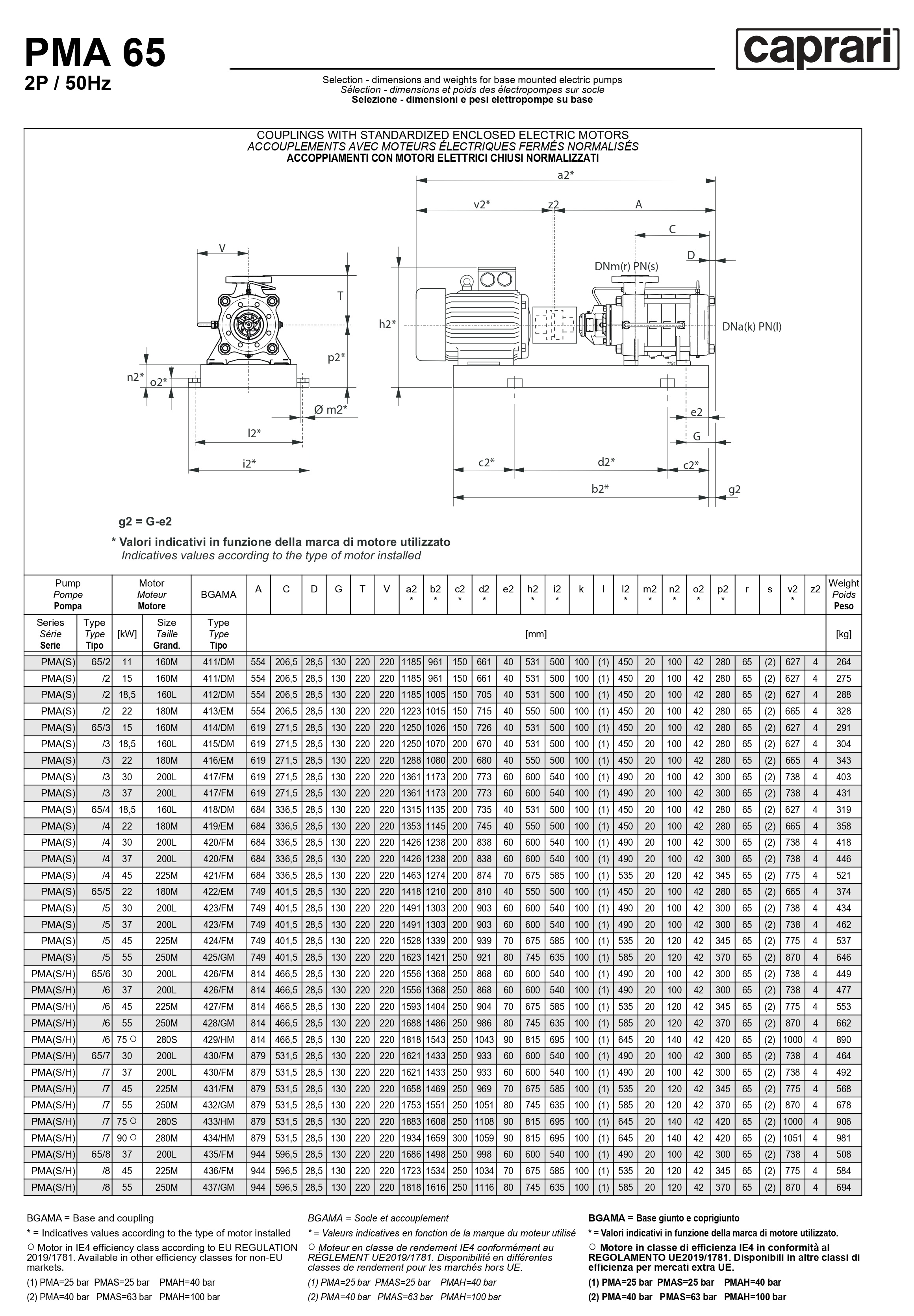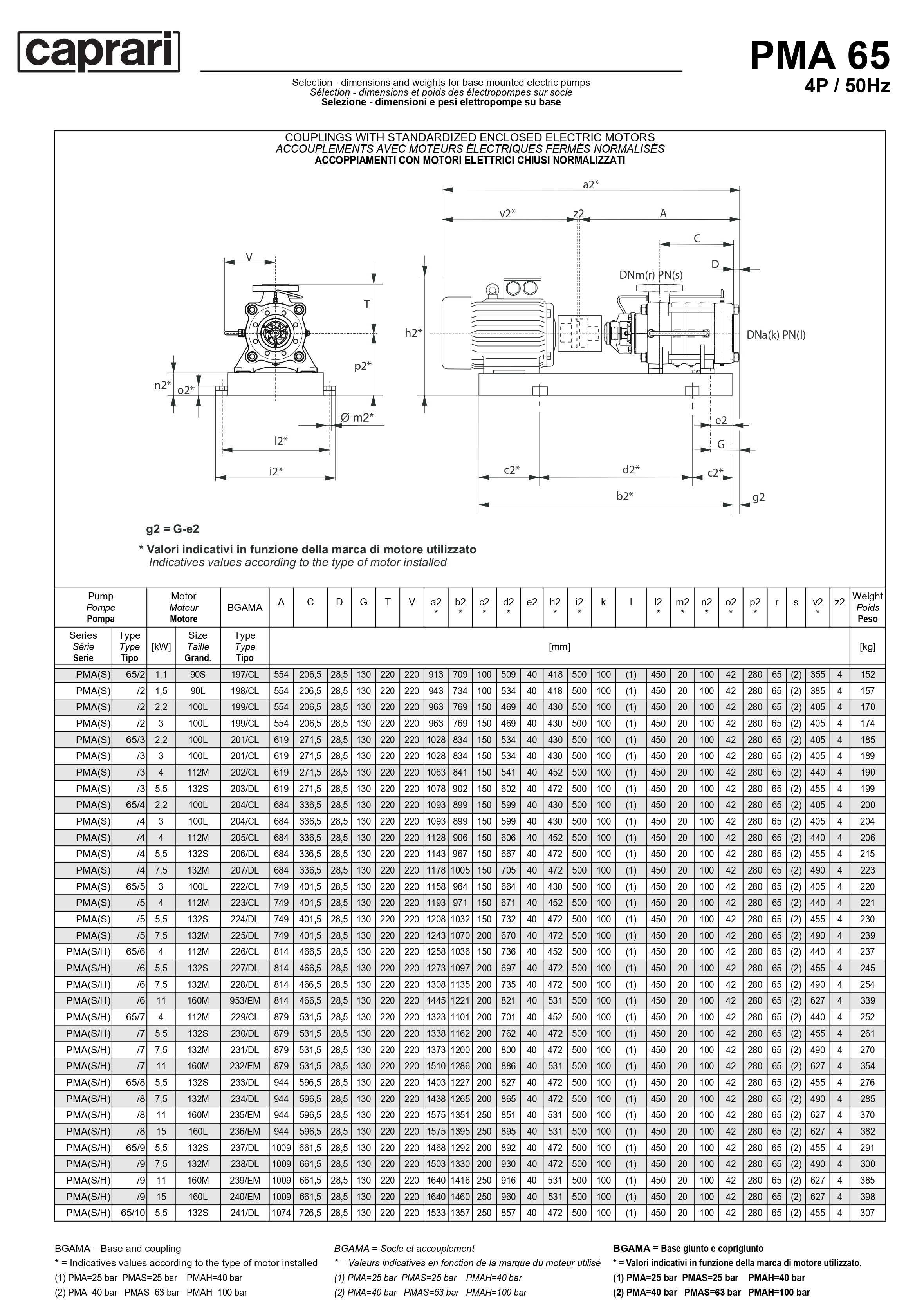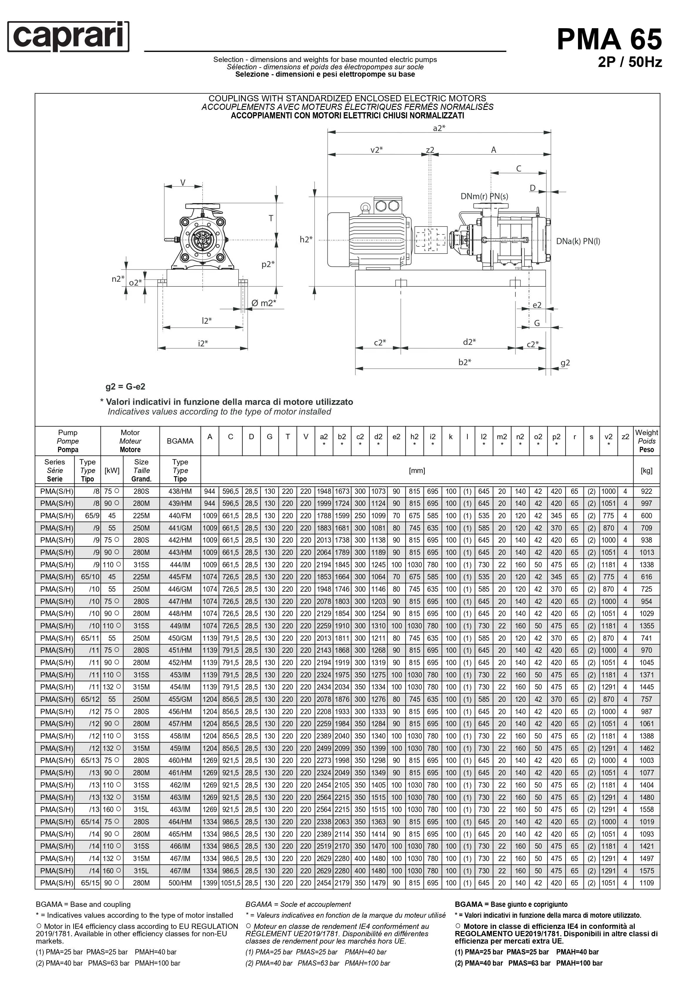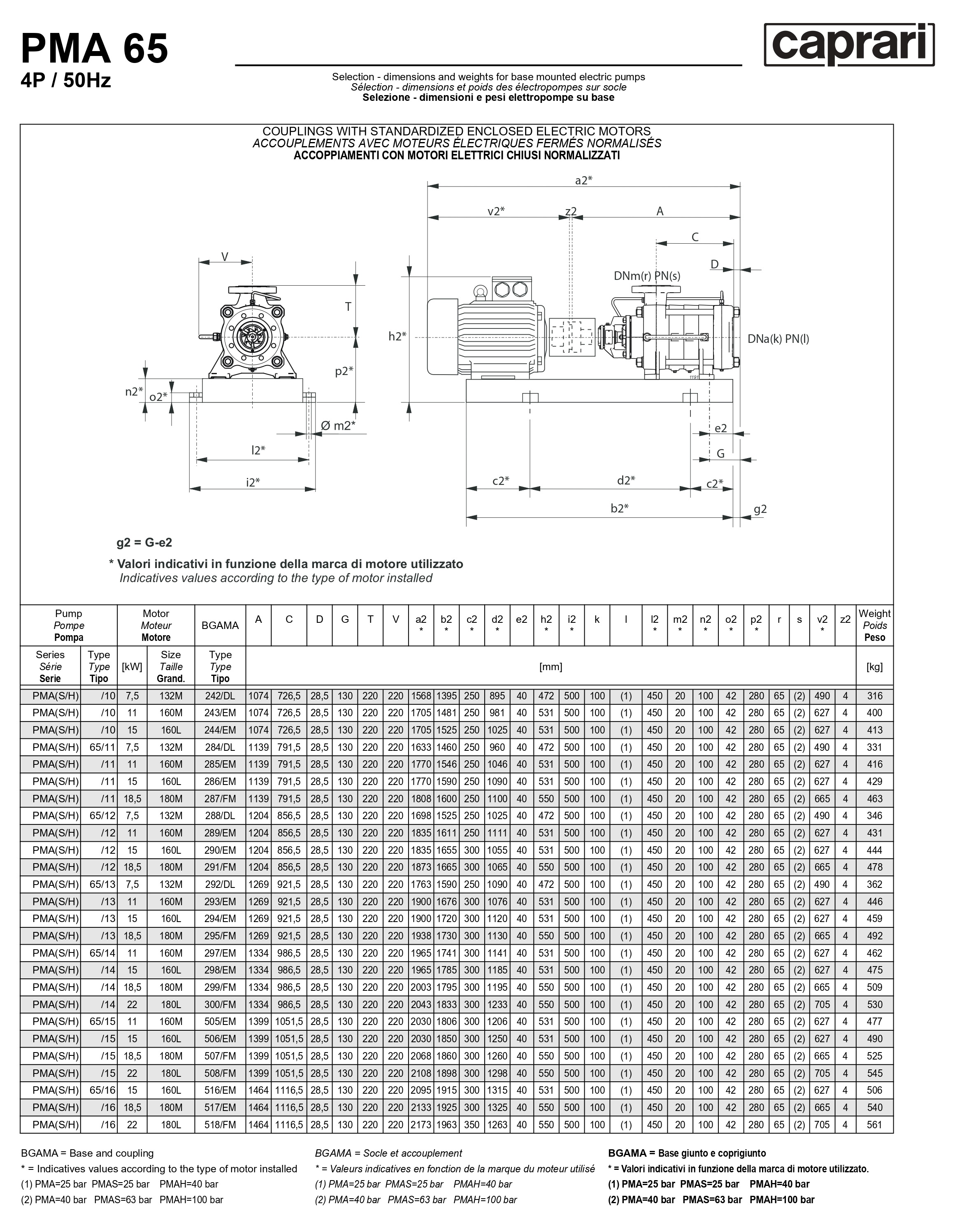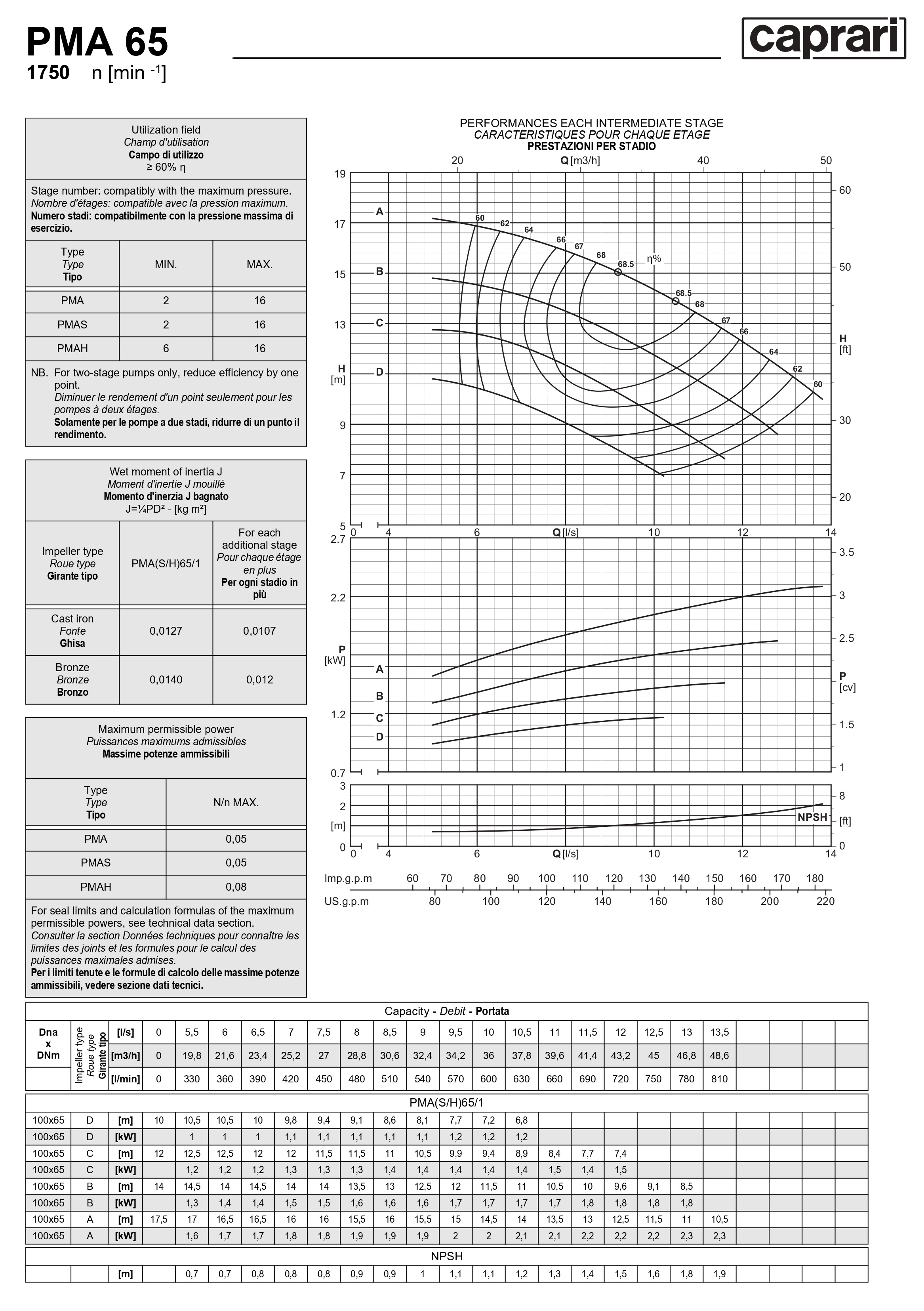 Горизонтальные многоступенчатые насосы высокого давления Caprari PMA 65 1750