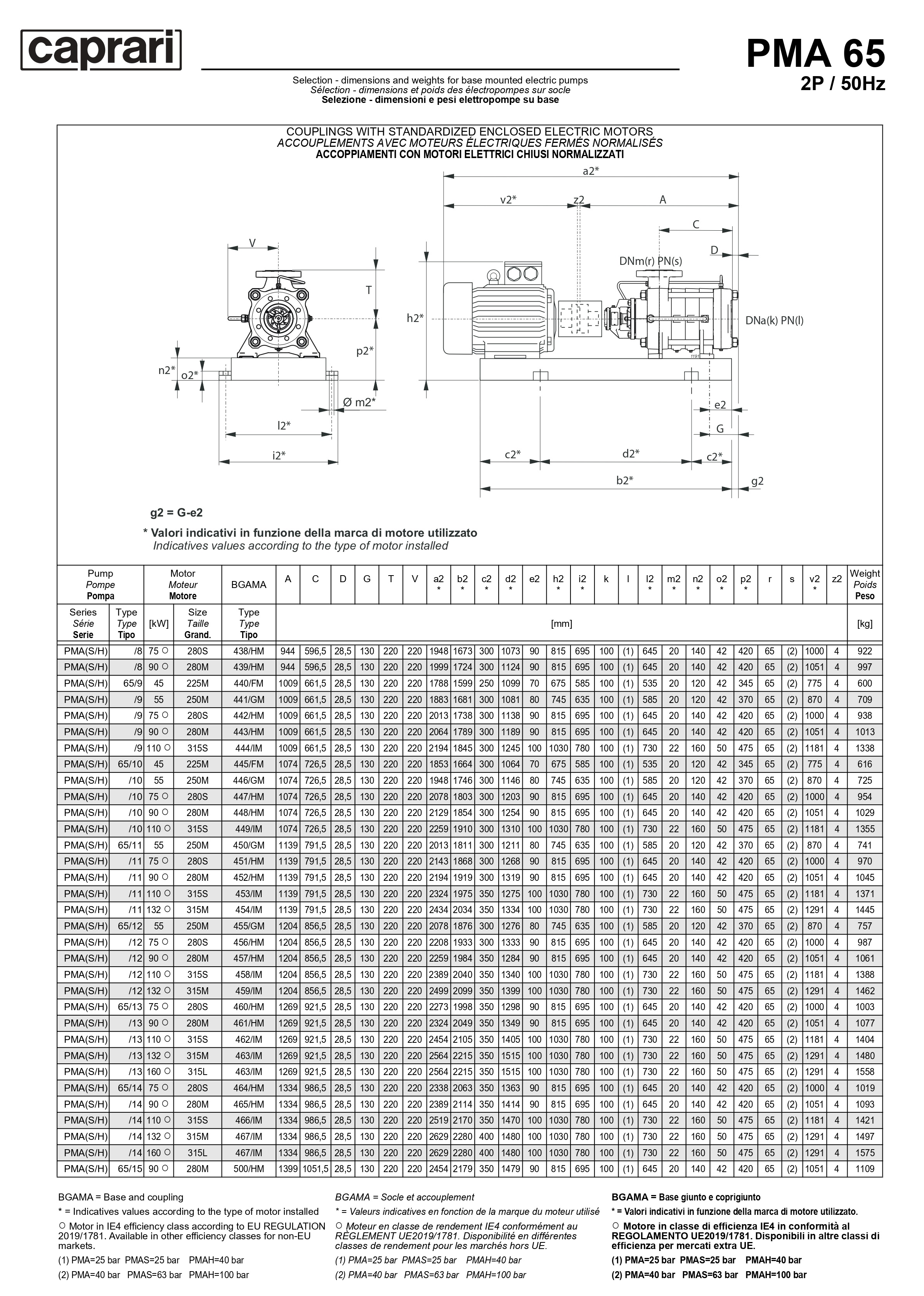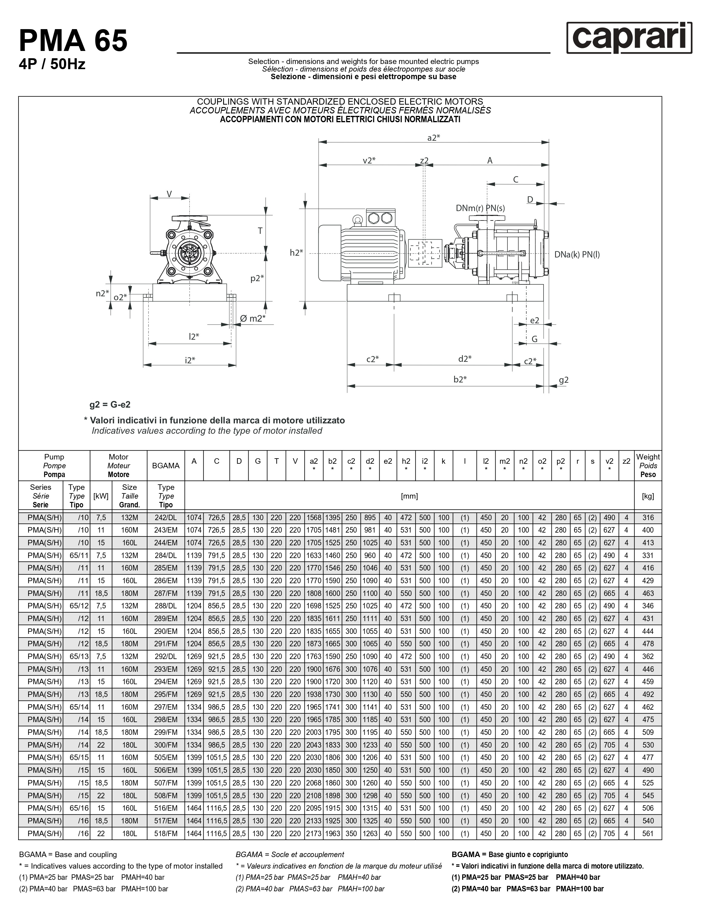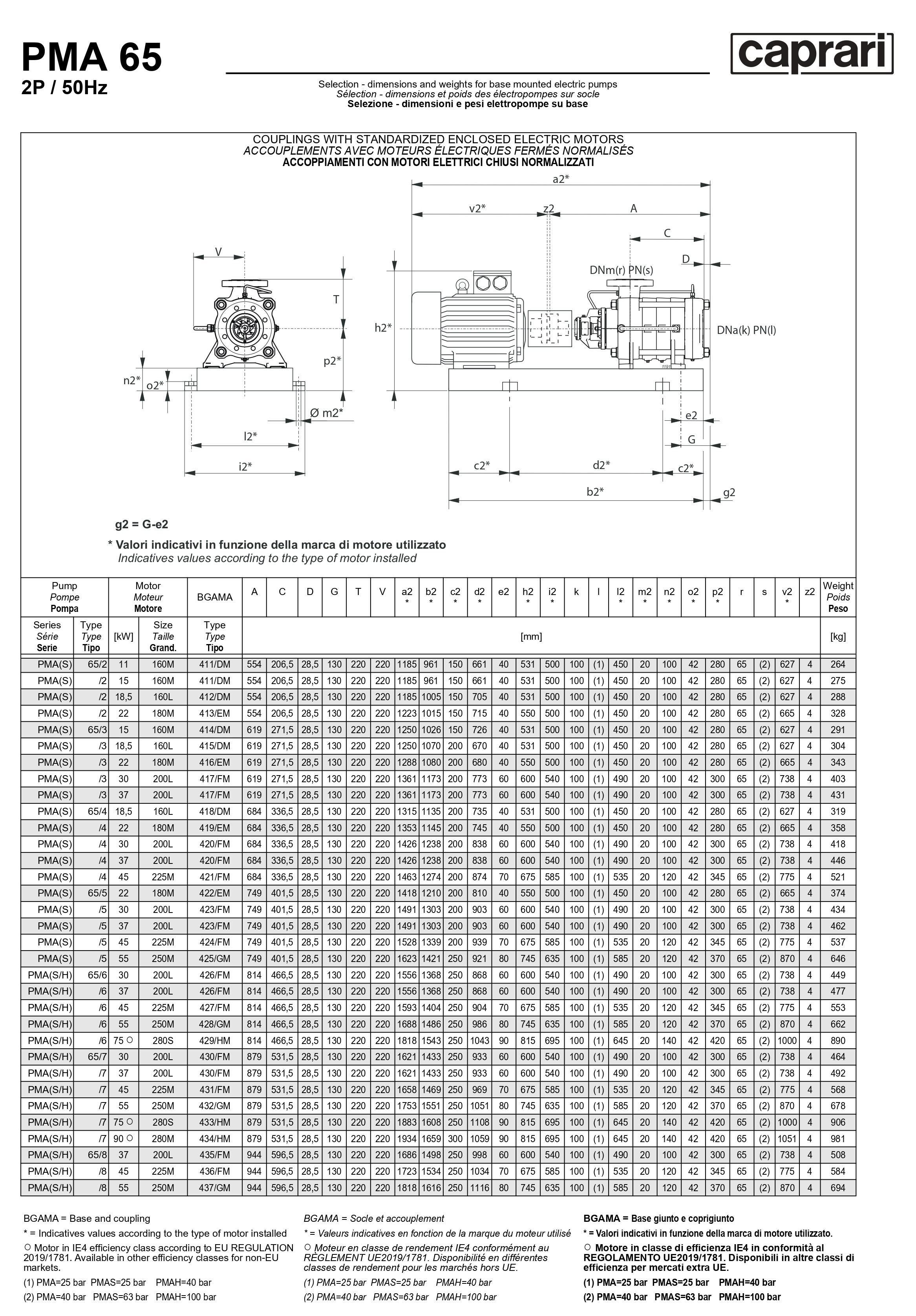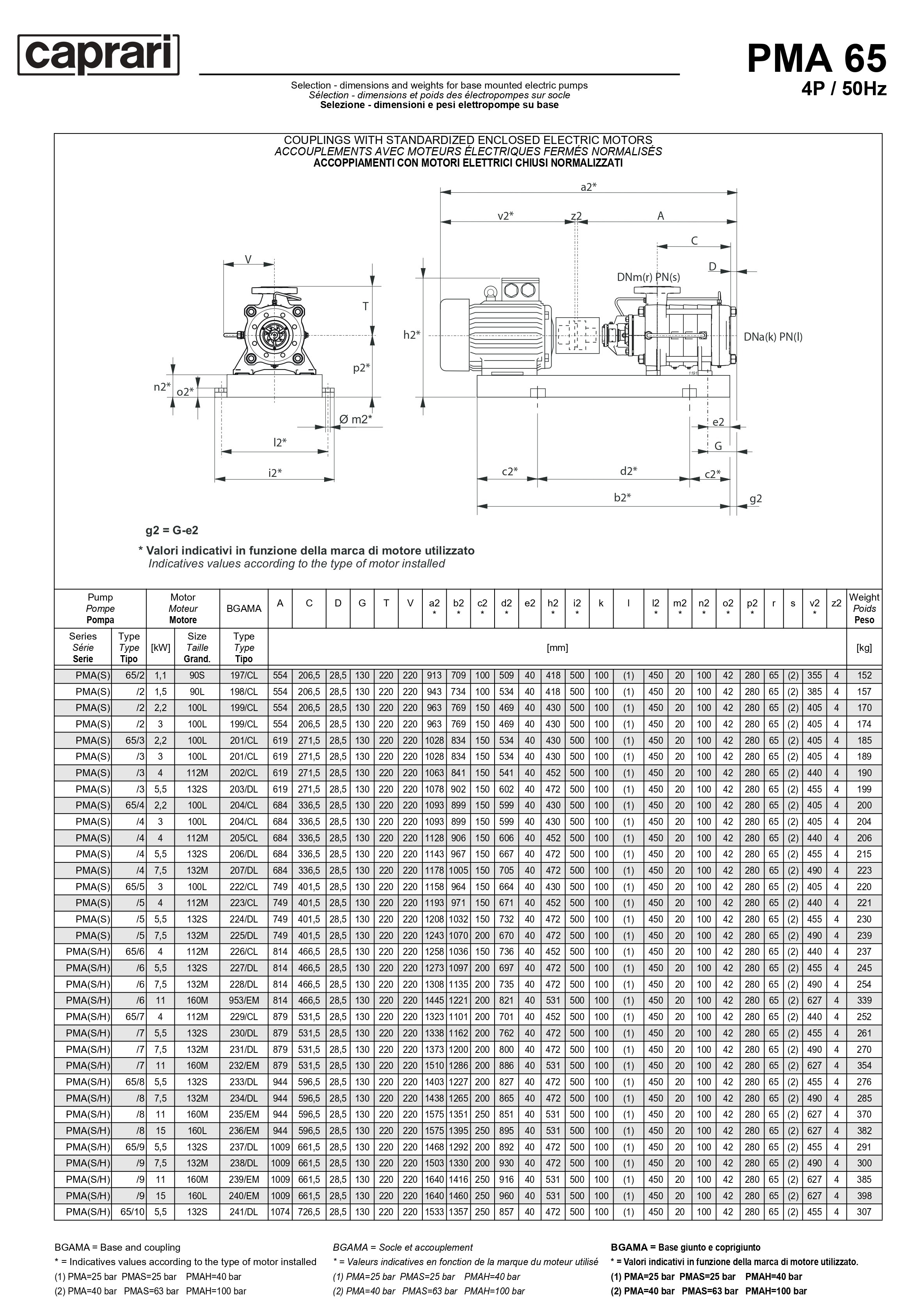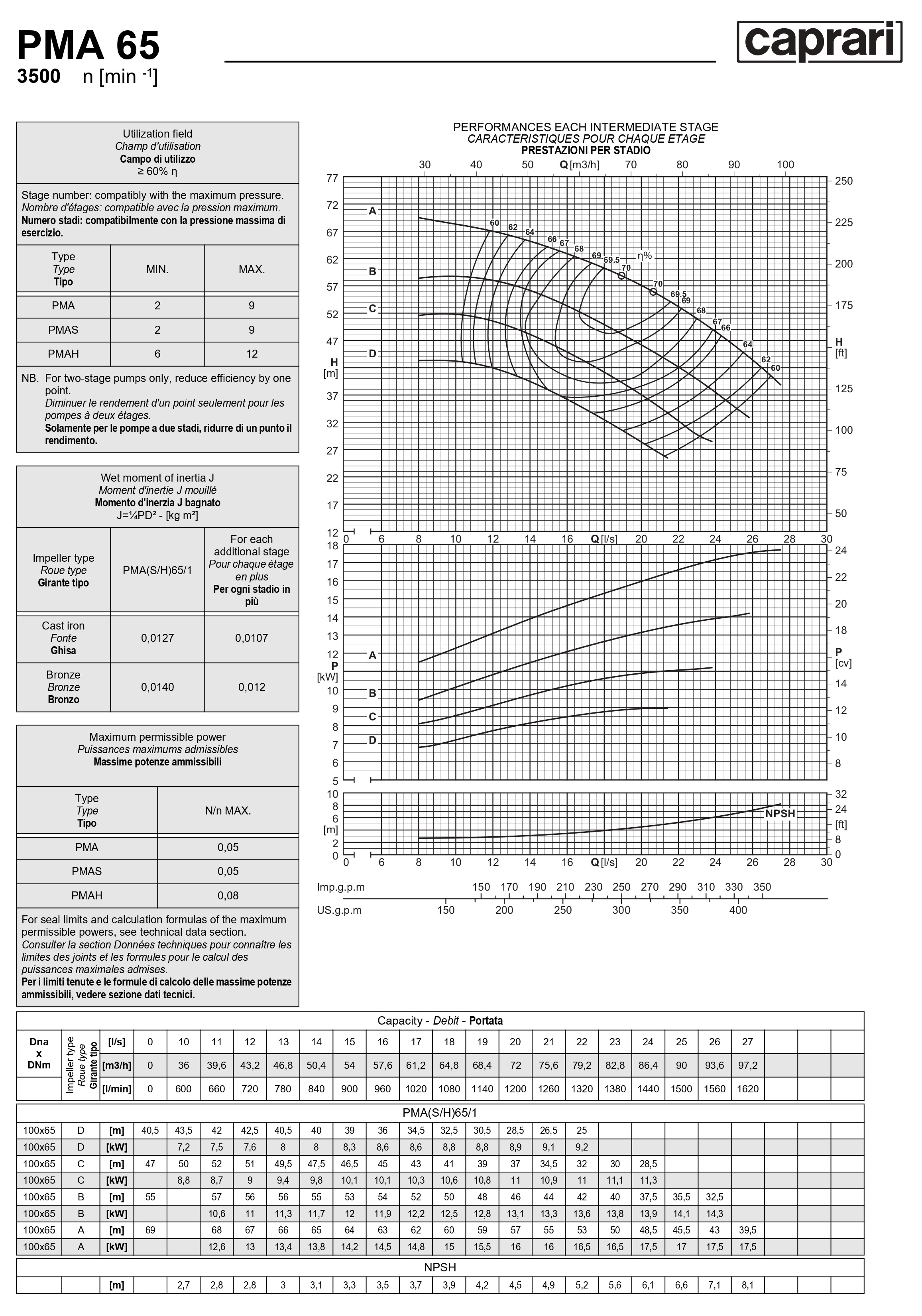 Горизонтальные многоступенчатые насосы высокого давления Caprari PMA 65 3500