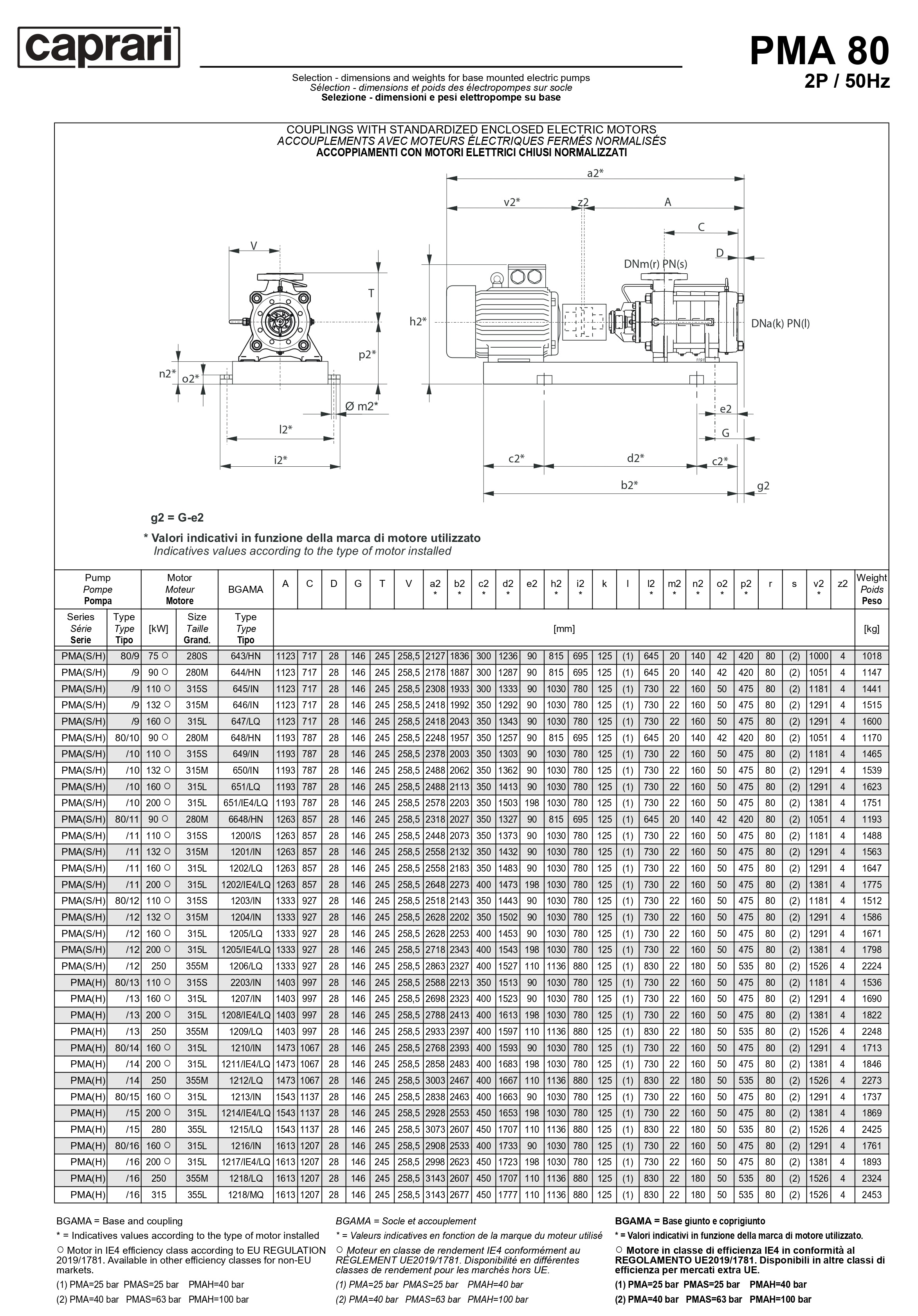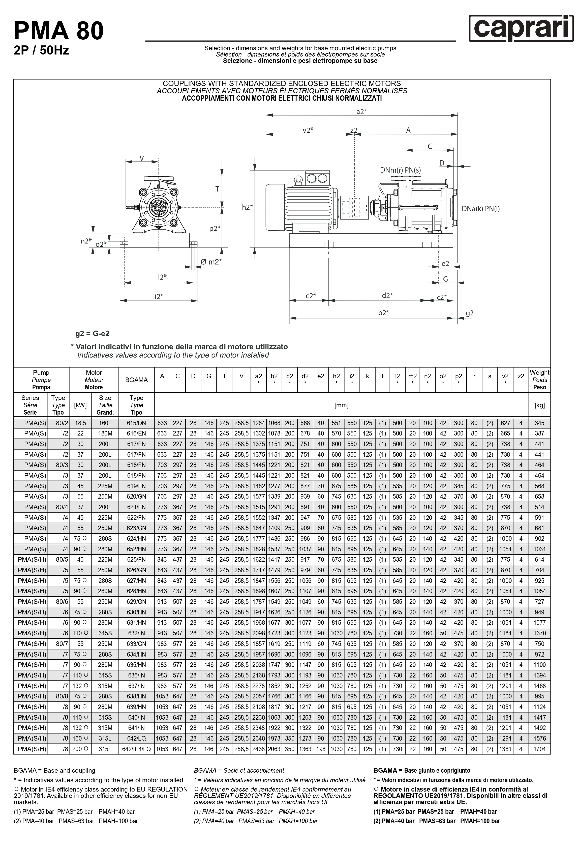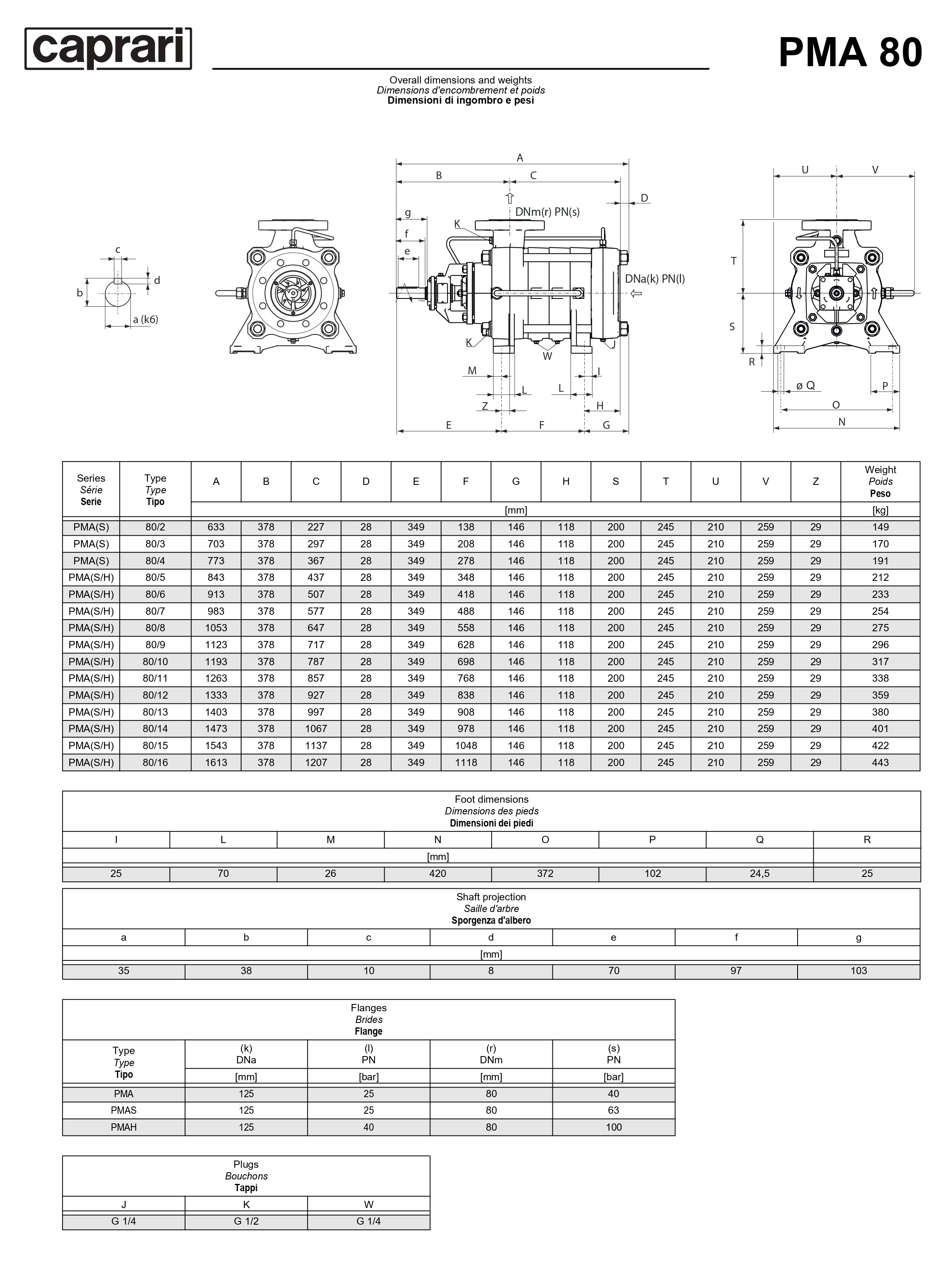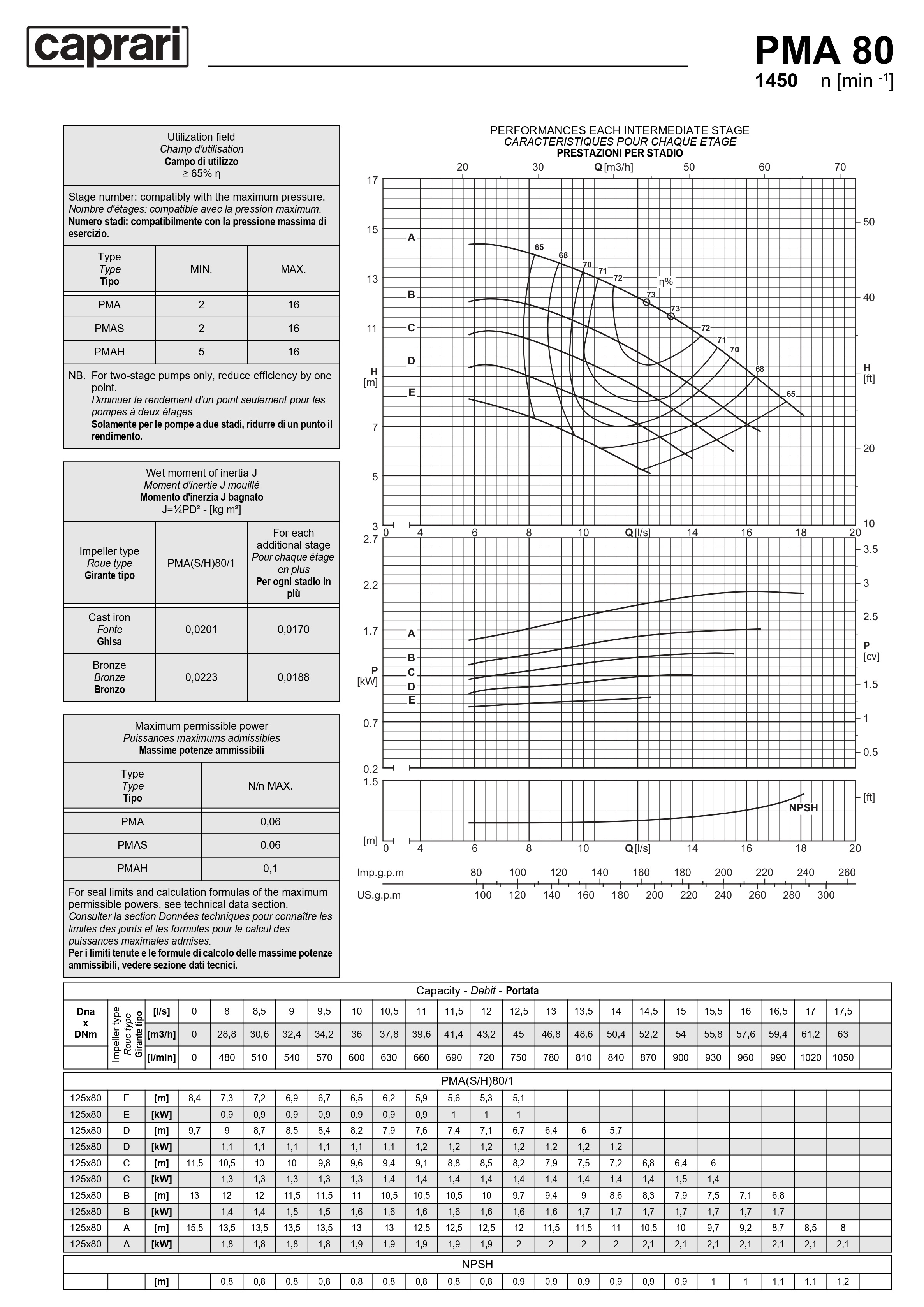 Горизонтальные многоступенчатые насосы высокого давления Caprari PMA 80 1450