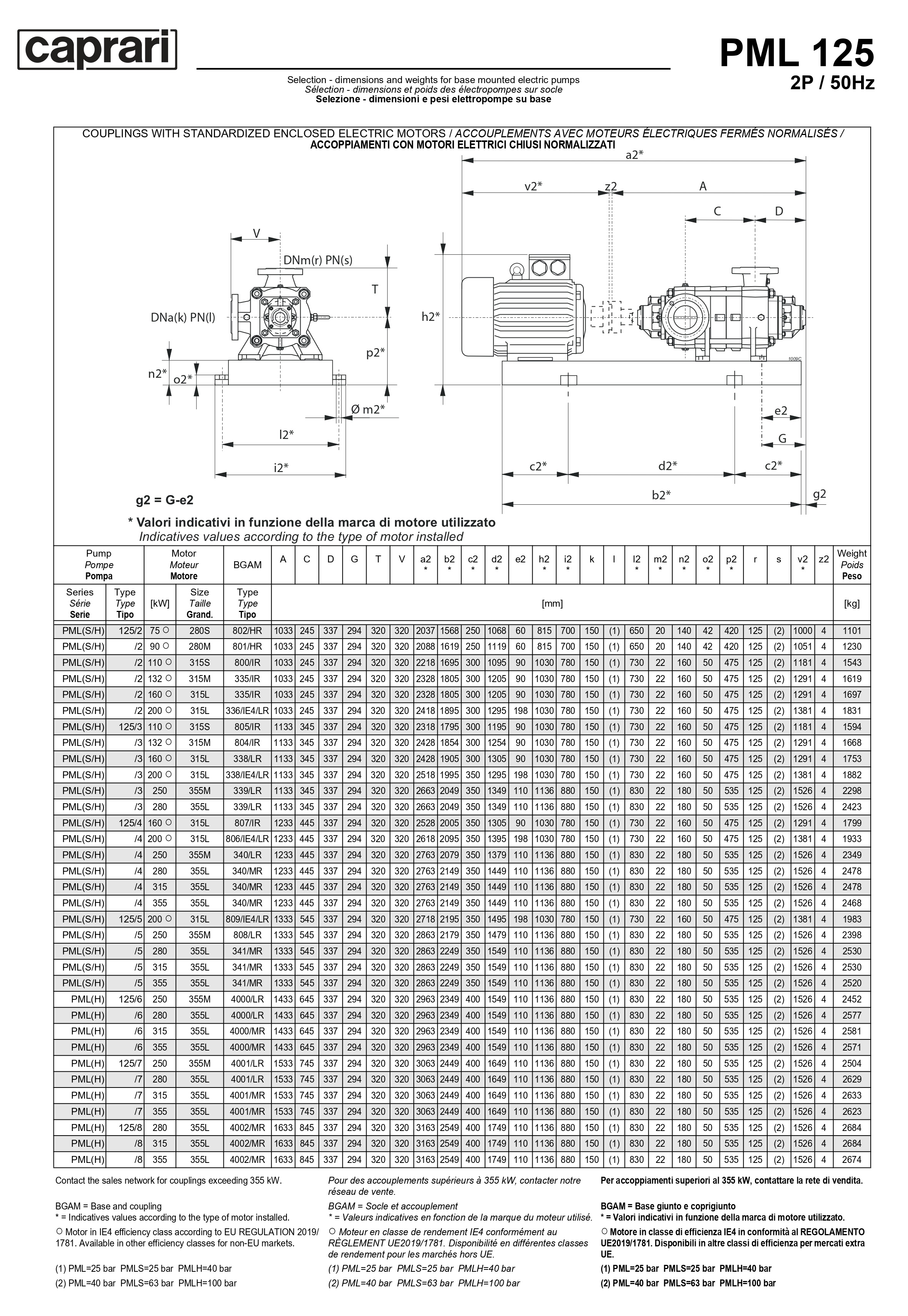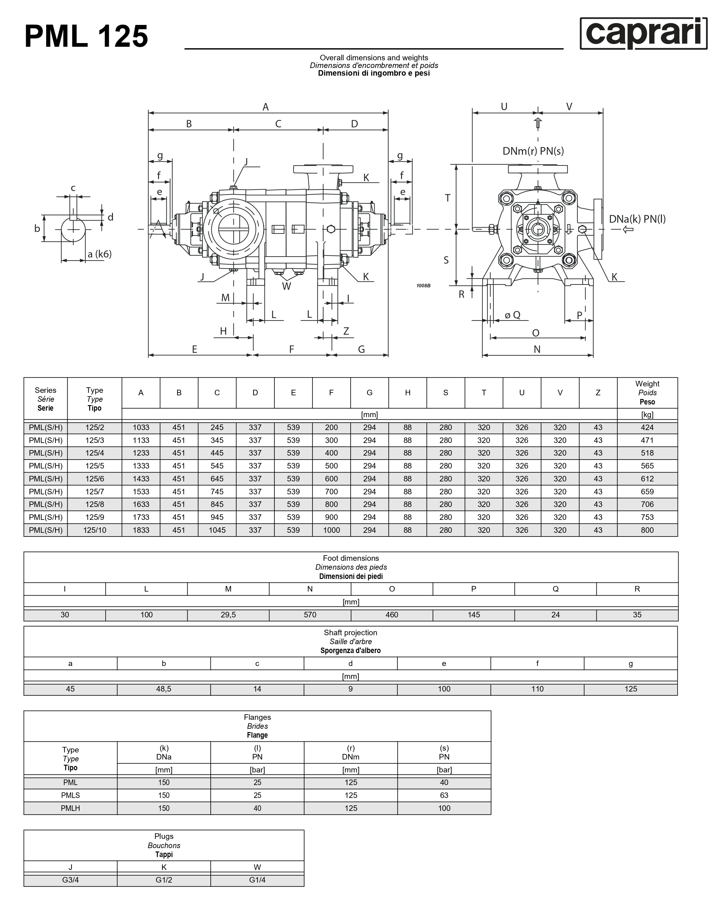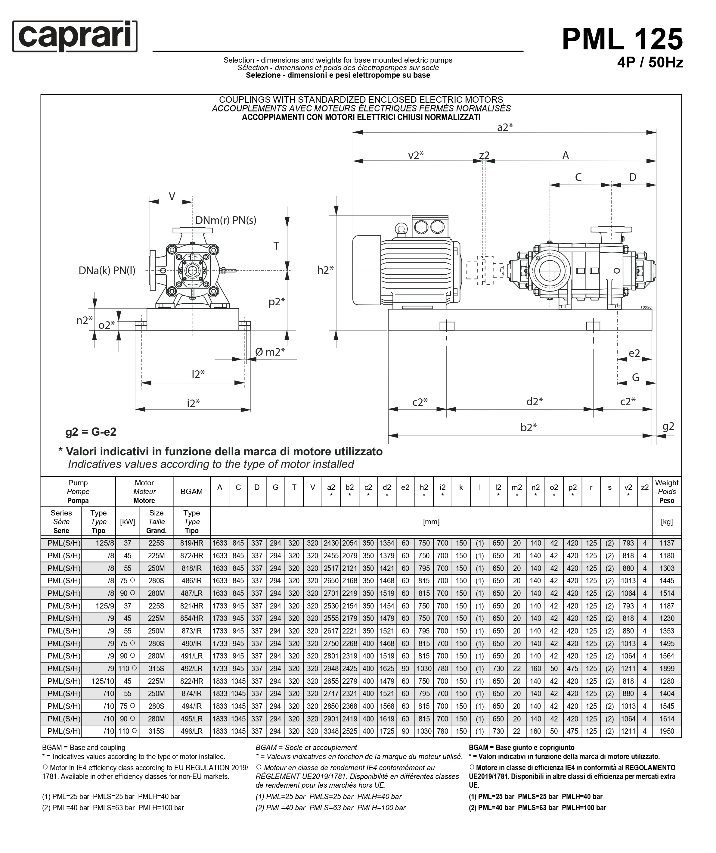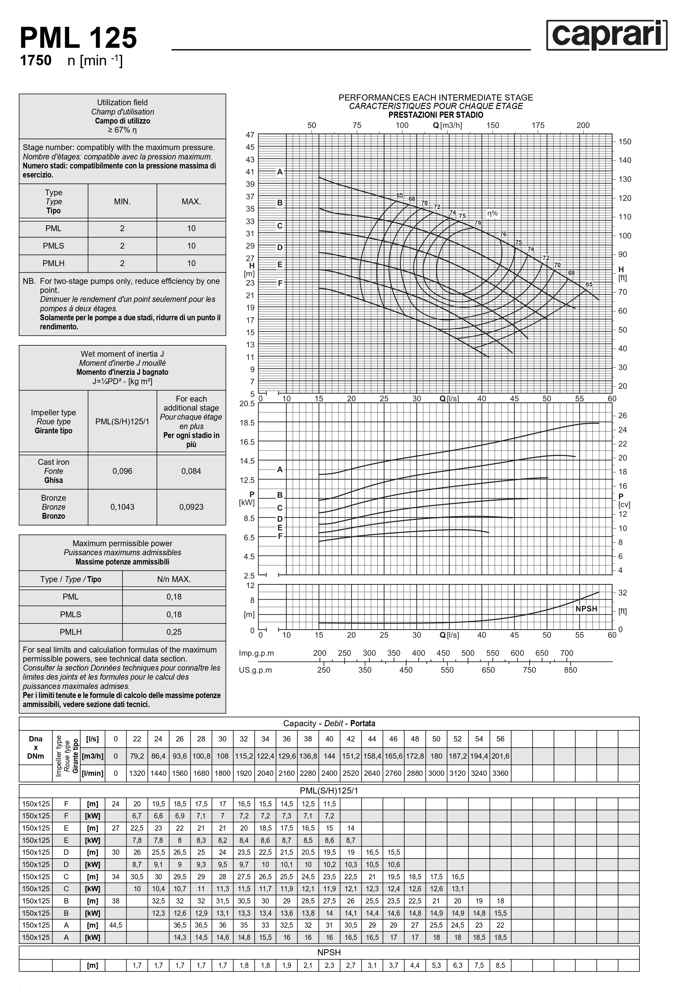 Горизонтальные многоступенчатые насосы высокого давления Caprari PMAL 125 1750