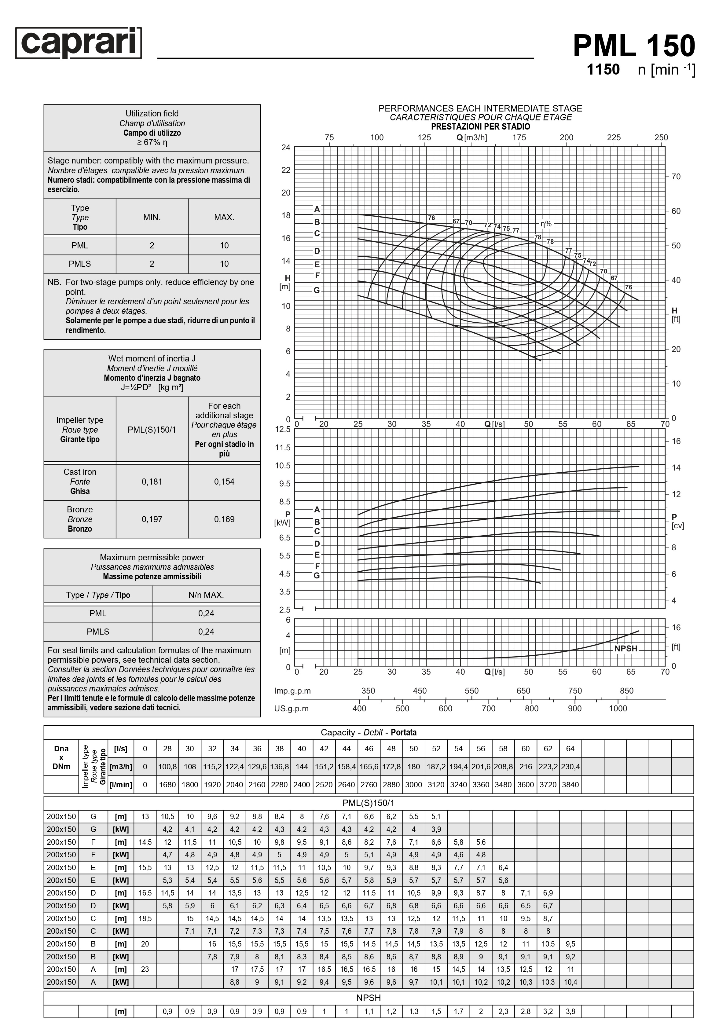 Горизонтальные многоступенчатые насосы высокого давления Caprari PML 150 1150
