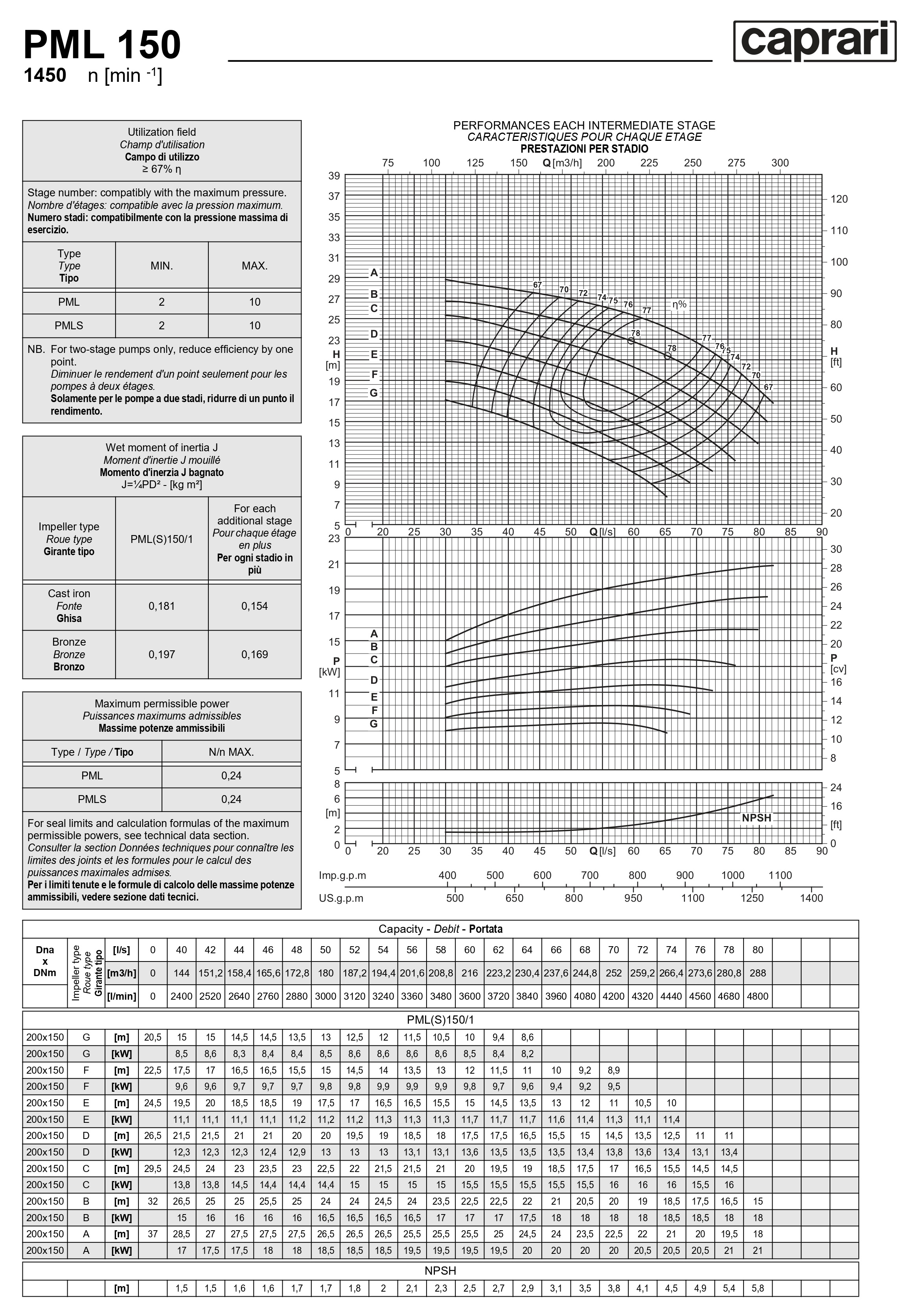 Горизонтальные многоступенчатые насосы высокого давления Caprari PML 150 1450