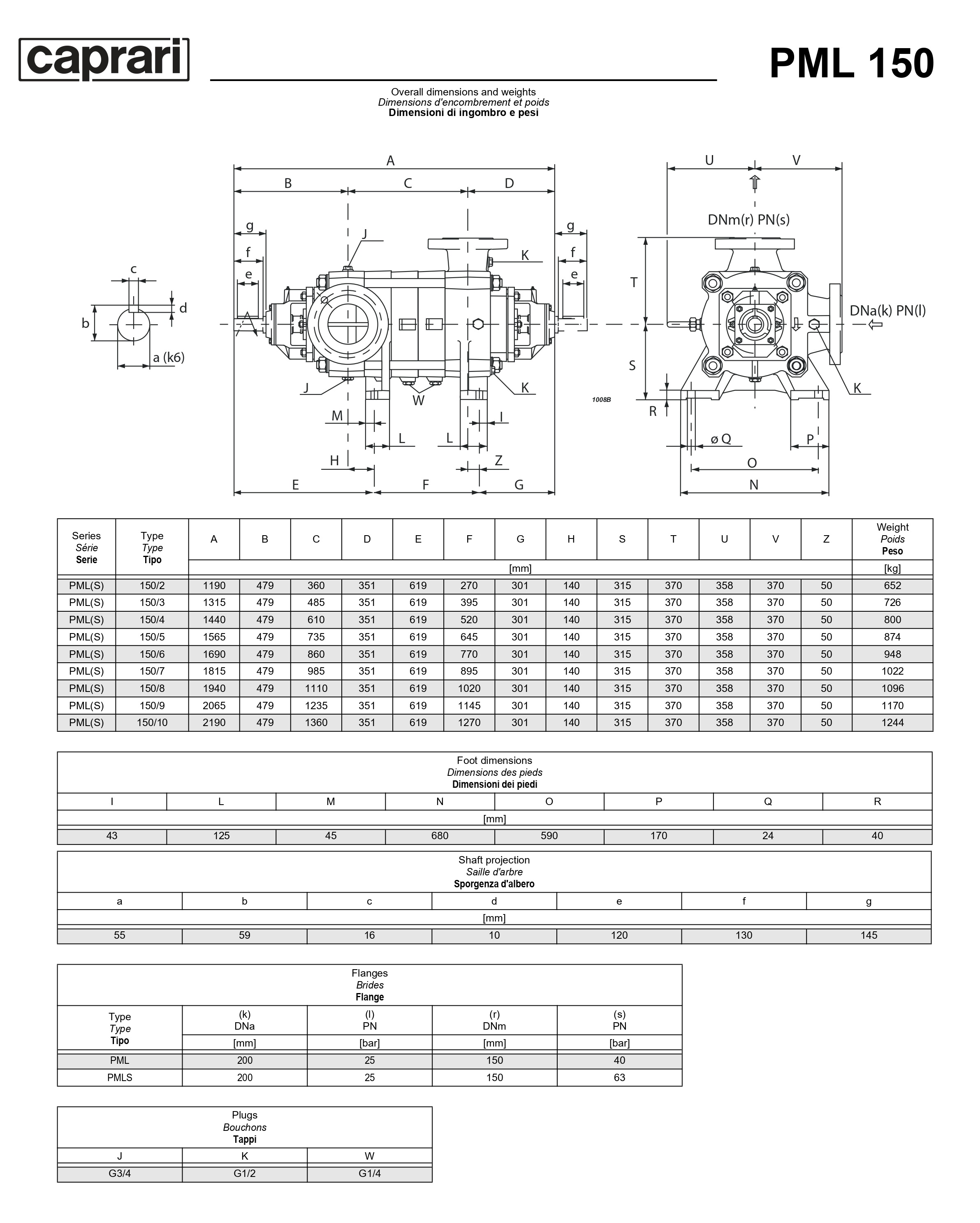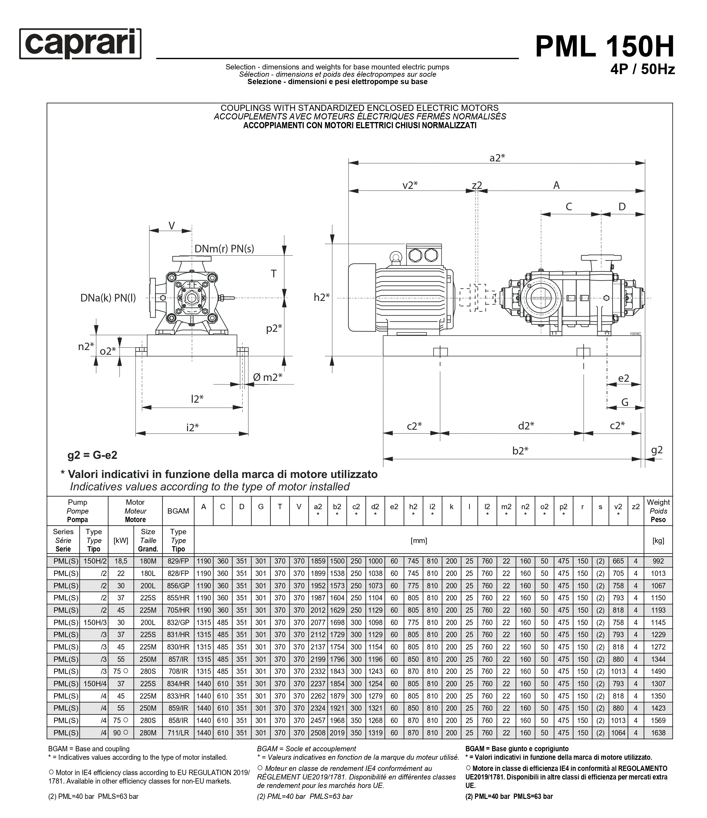 Горизонтальные многоступенчатые насосы высокого давления Caprari PML 150 2200
