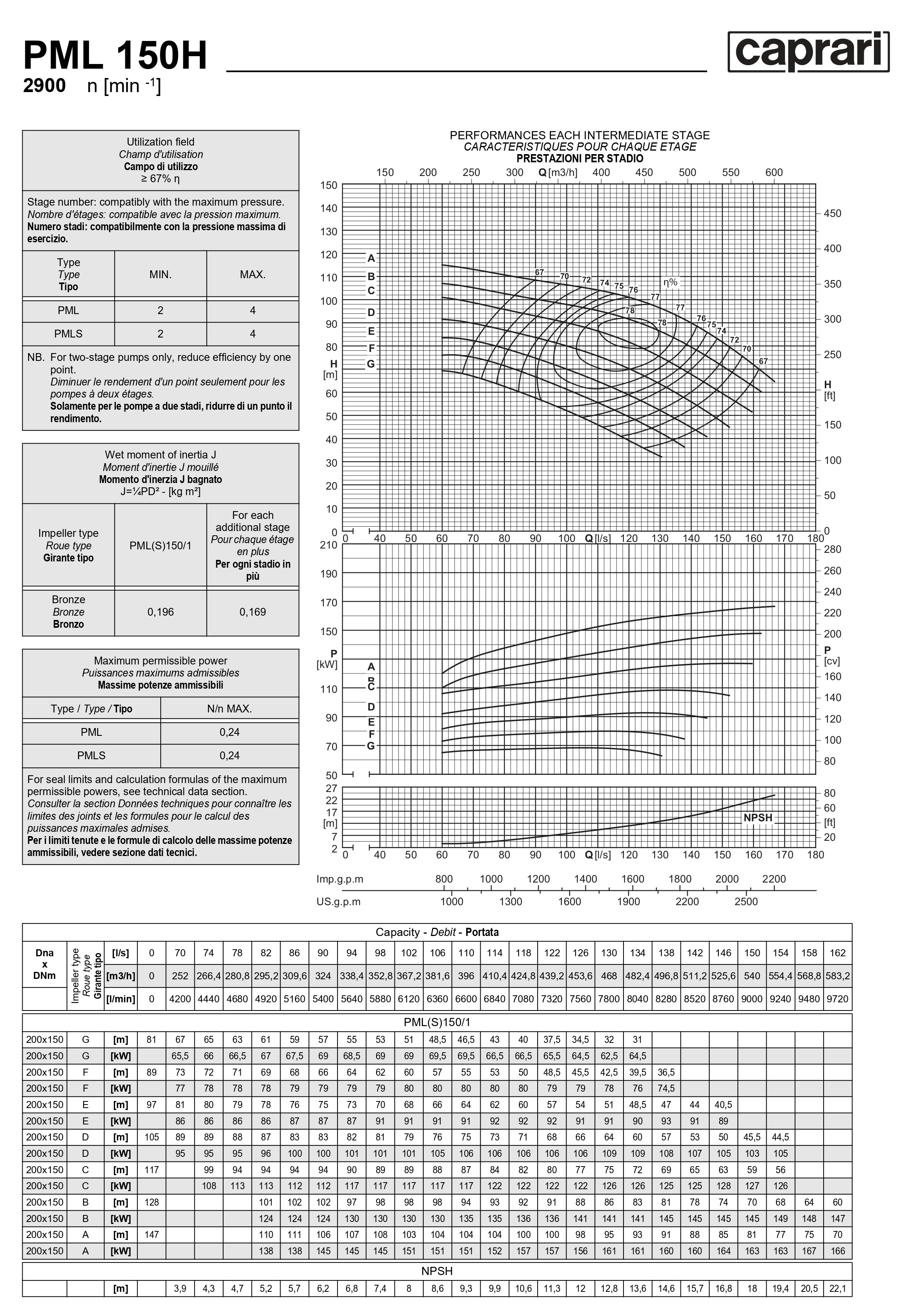 Горизонтальные многоступенчатые насосы высокого давления Caprari PML 150H 2900