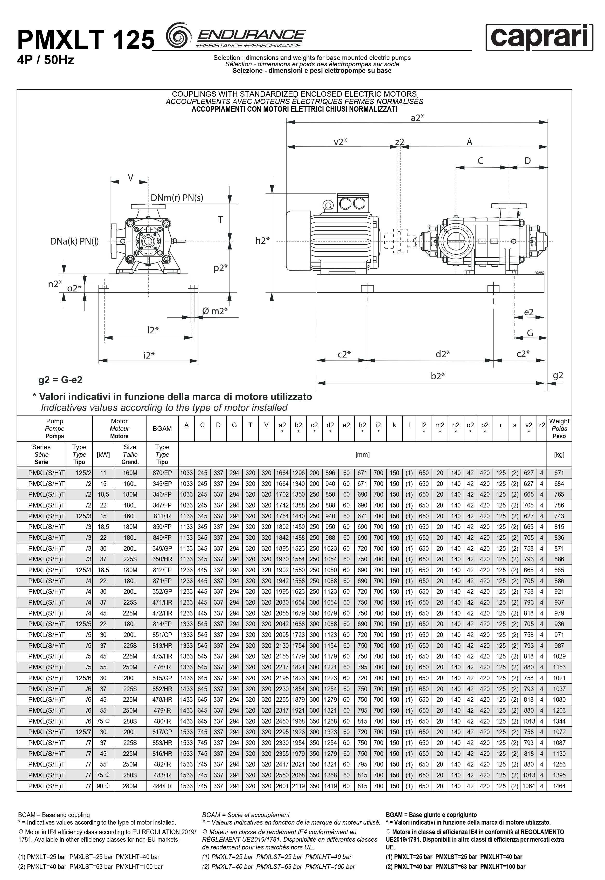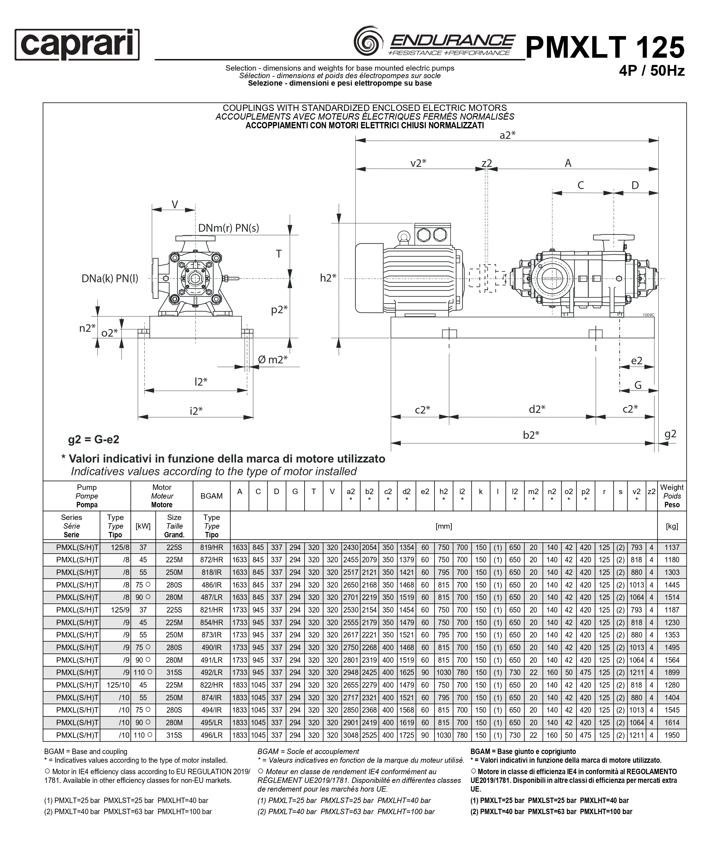 Горизонтальные секционные насосы высокого давления Caprari PMXLT 125 1750 из нержавеющей стали