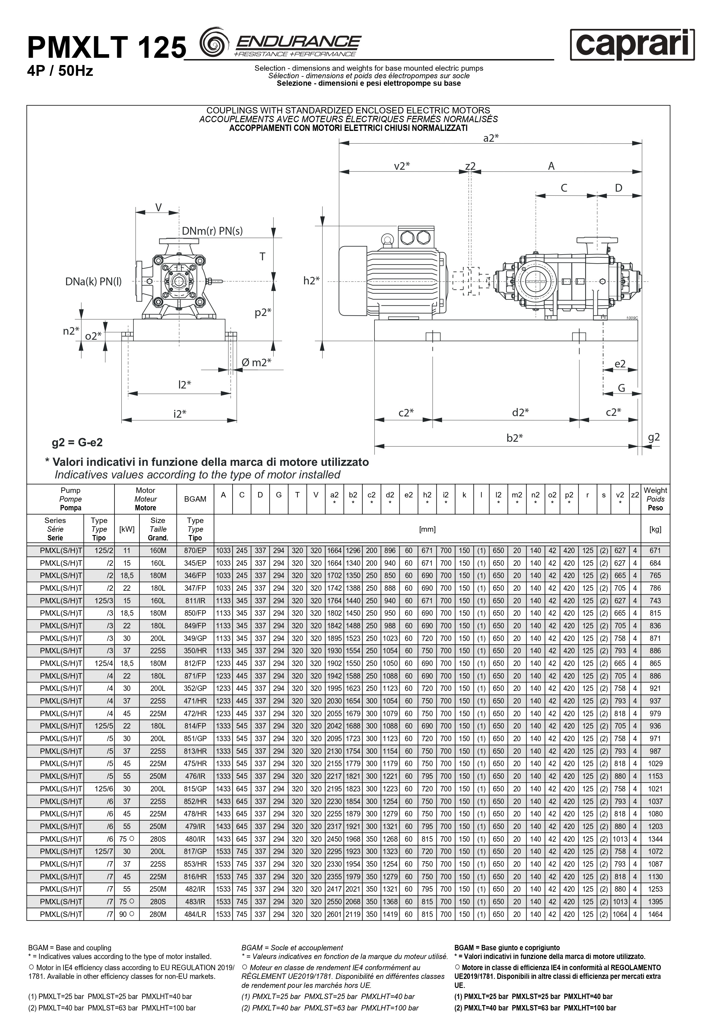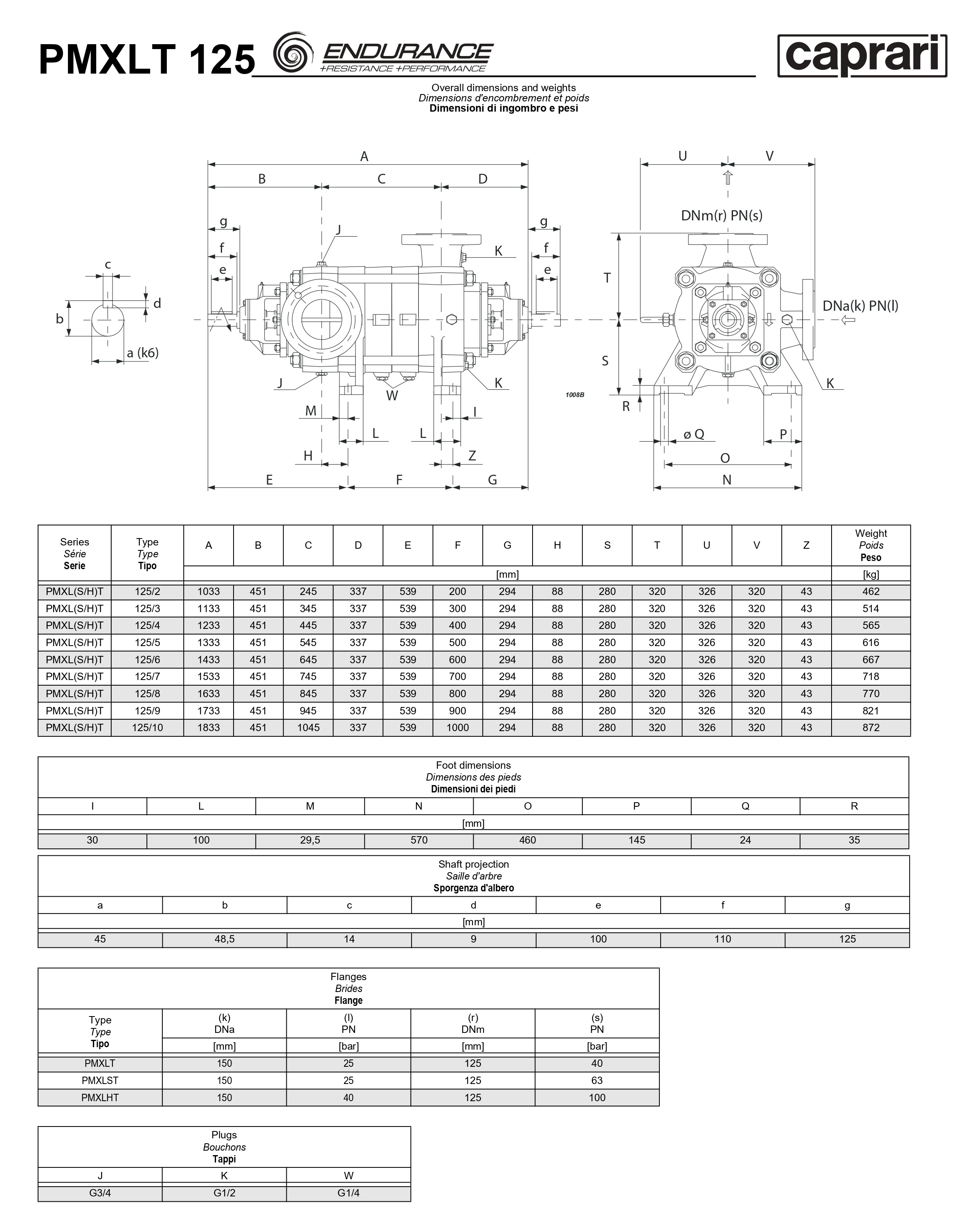 Горизонтальные секционные насосы высокого давления Caprari PMXLT 125 2200 из нержавеющей стали