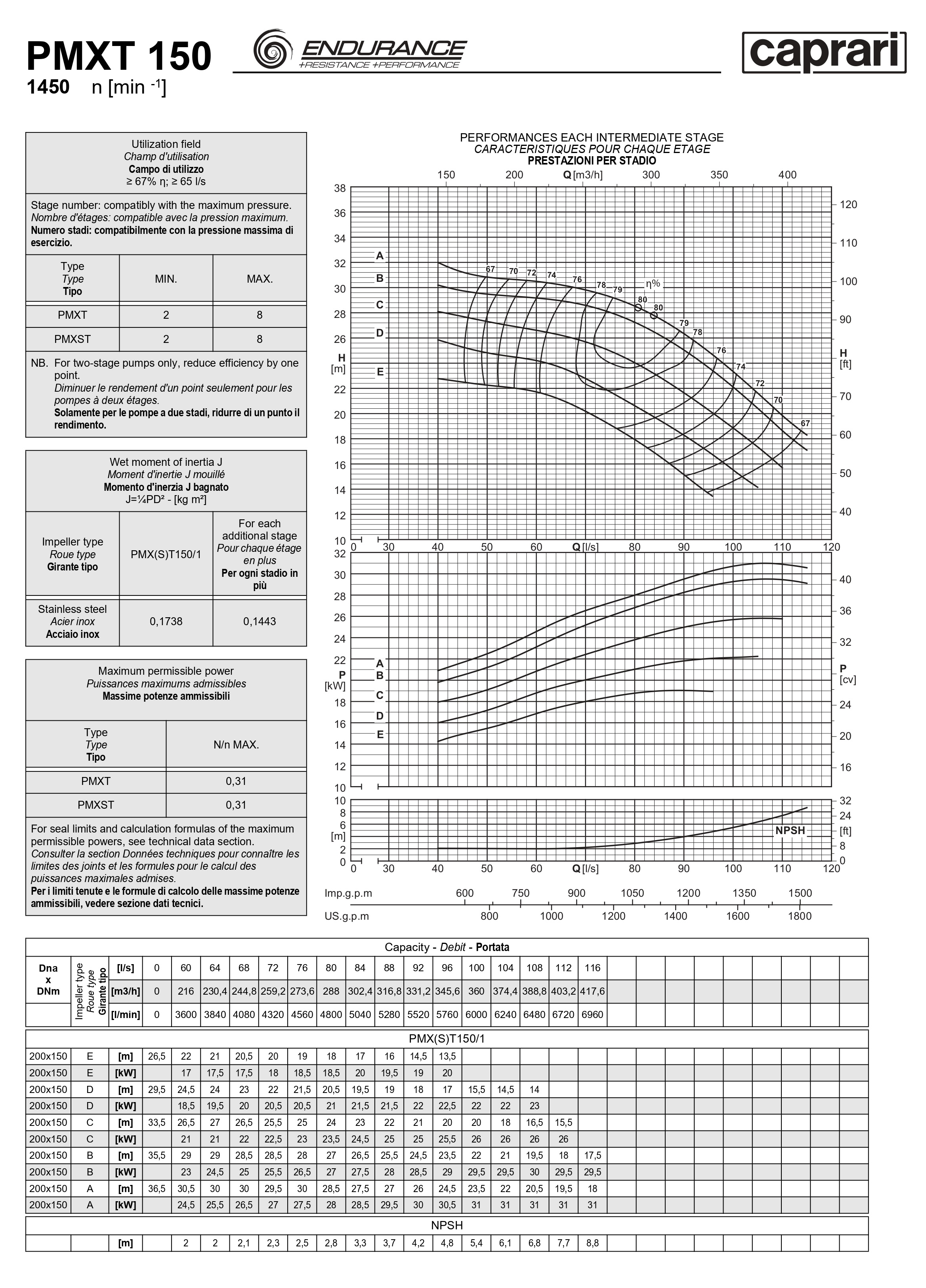 Горизонтальные секционные насосы высокого давления Caprari PMXLT 150 1450 из нержавеющей стали