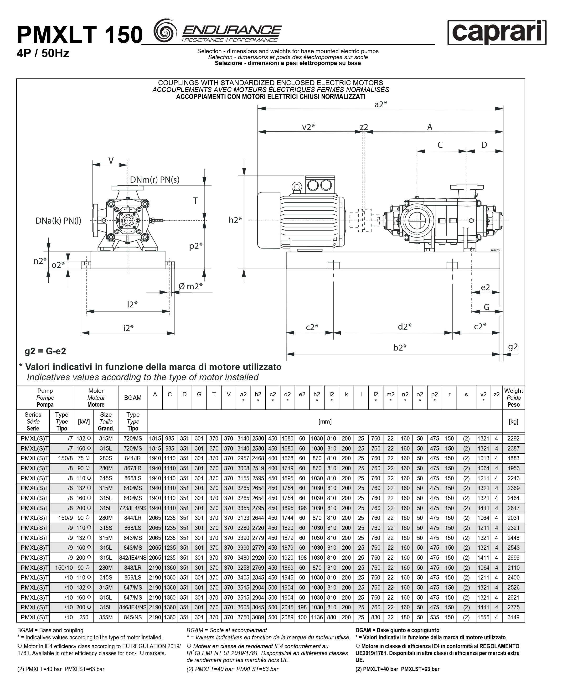 Горизонтальные секционные насосы высокого давления Caprari PMXLT 150 2200 из нержавеющей стали