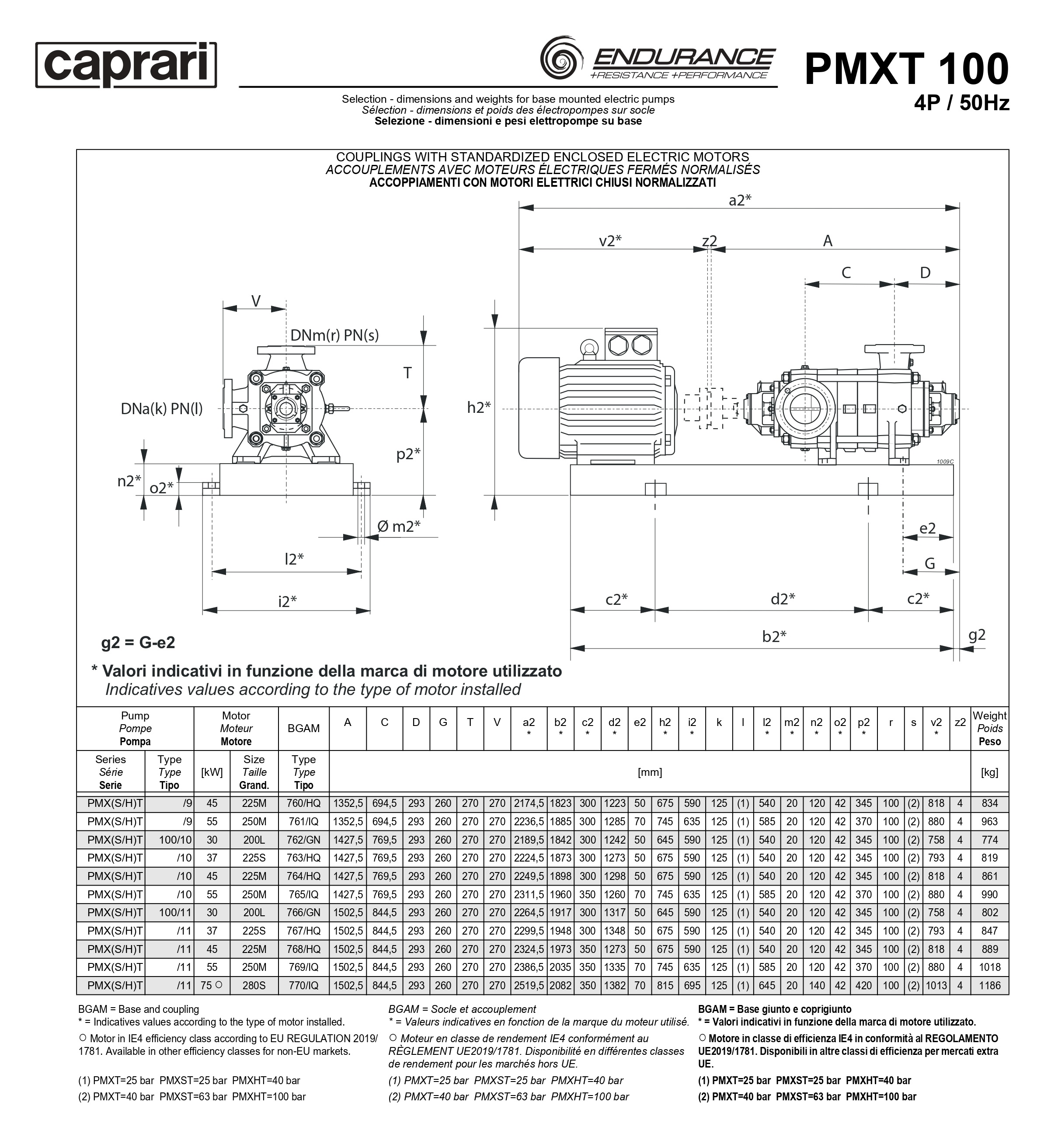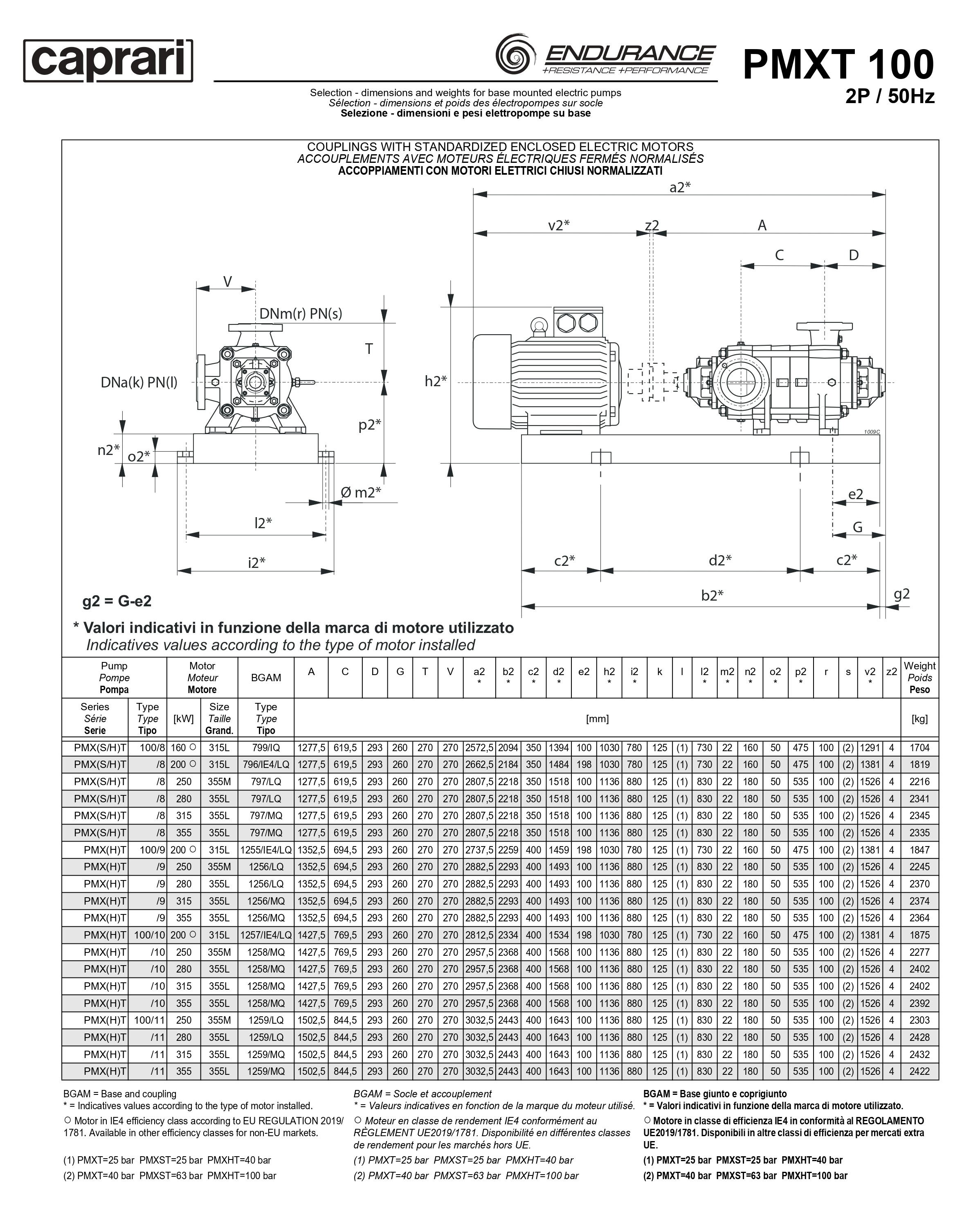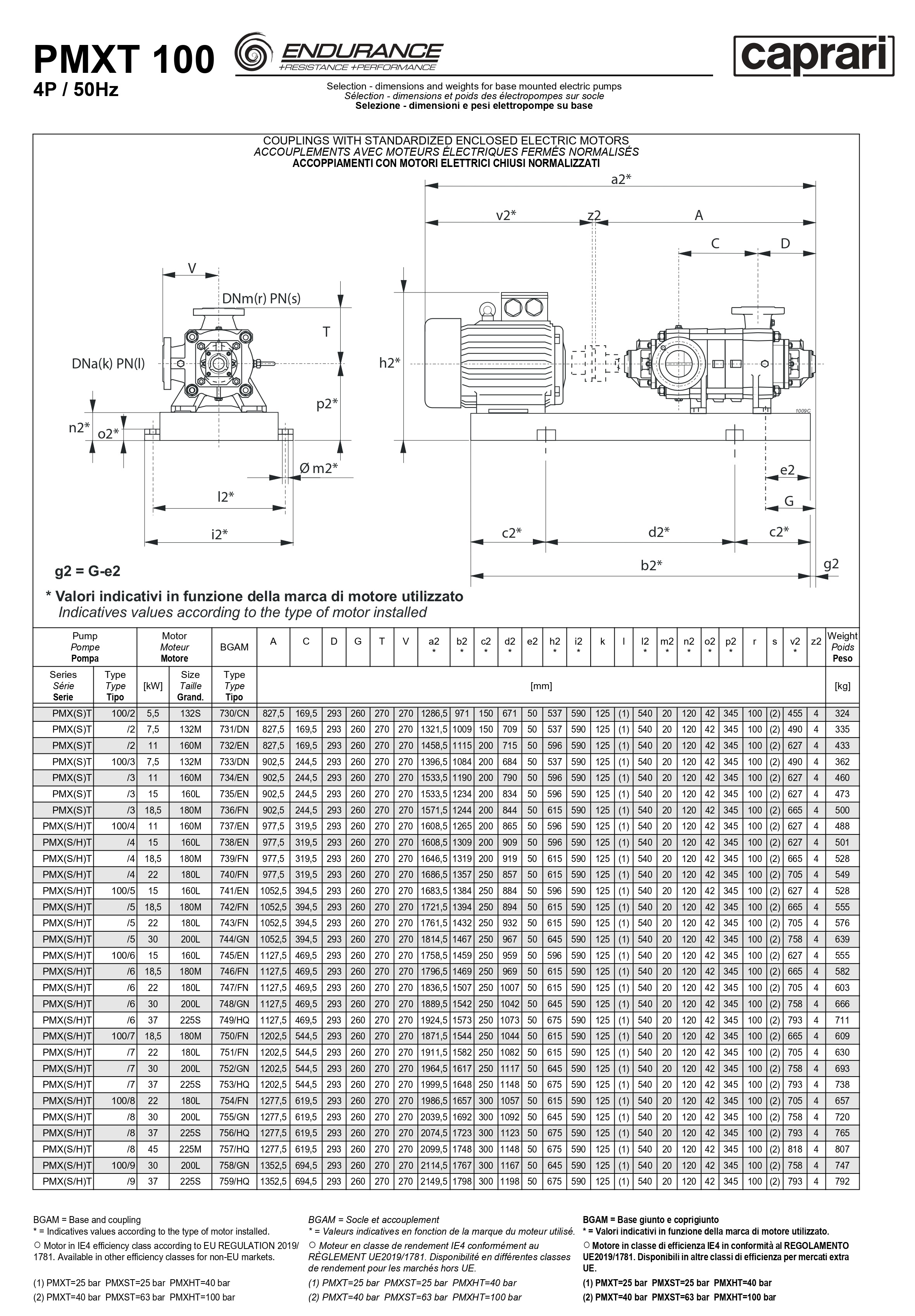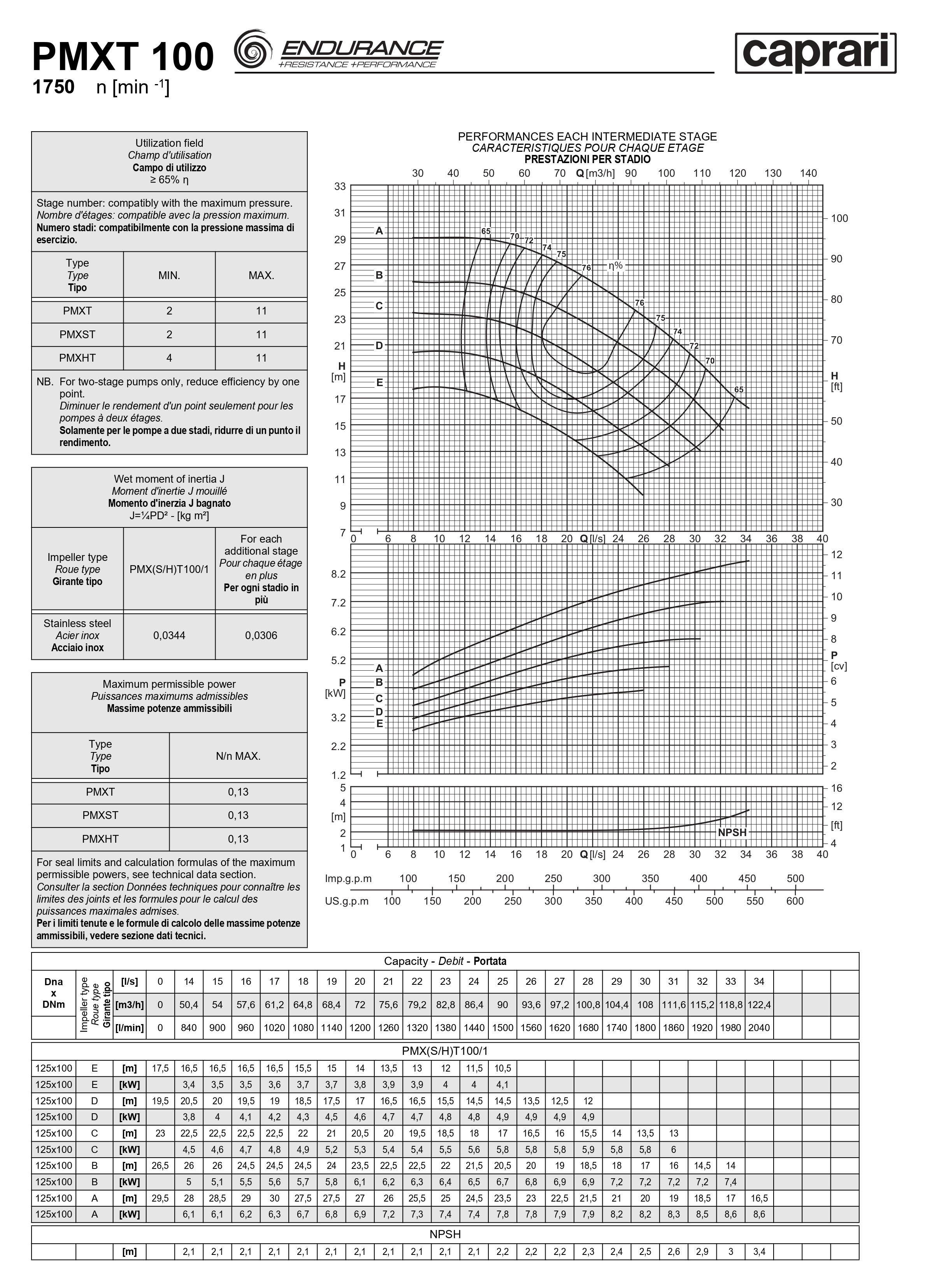 Горизонтальные секционные насосы высокого давления Caprari PMXT 100 1750 из нержавеющей стали