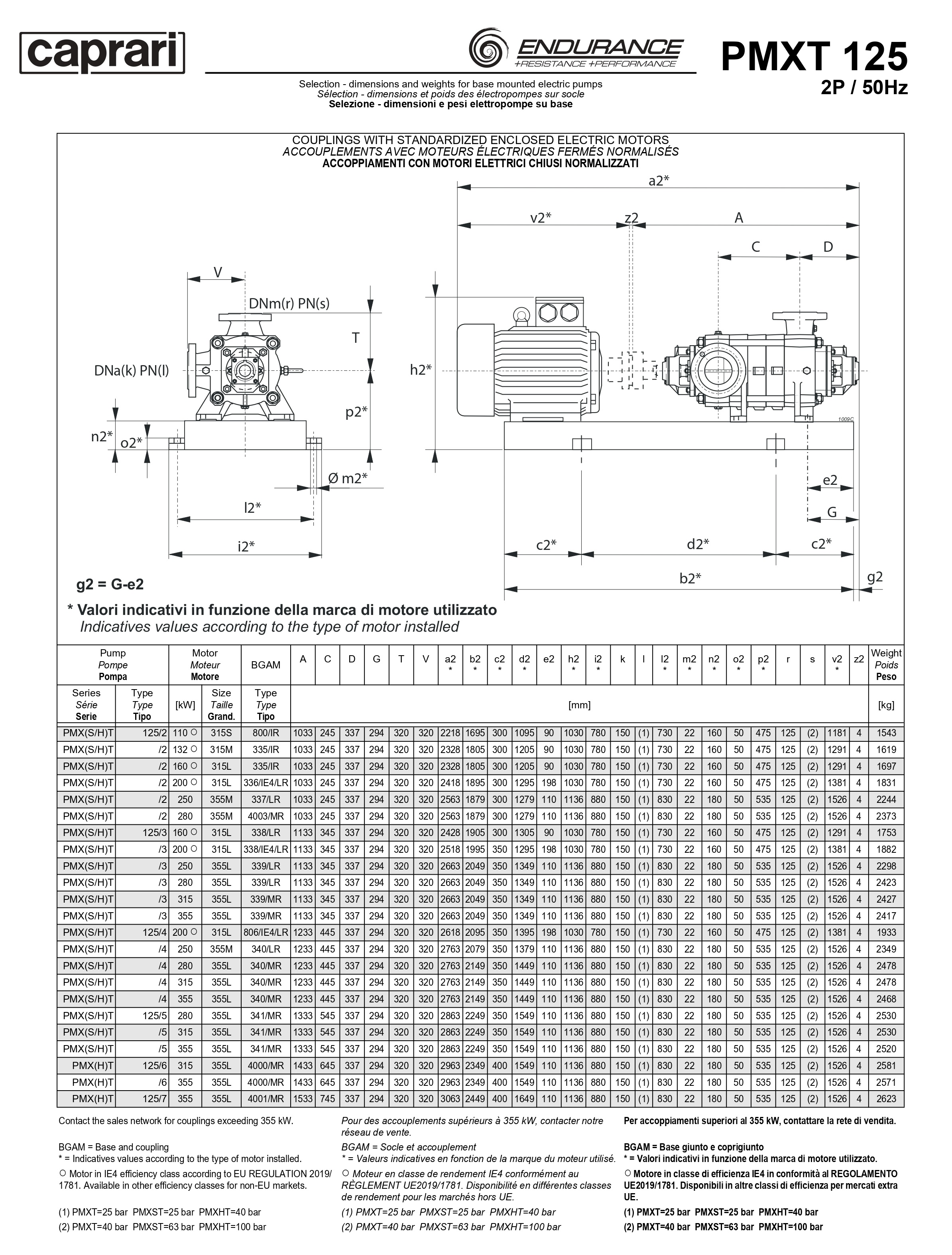 Горизонтальные секционные насосы высокого давления Caprari PMXT 125 1750 из нержавеющей стали