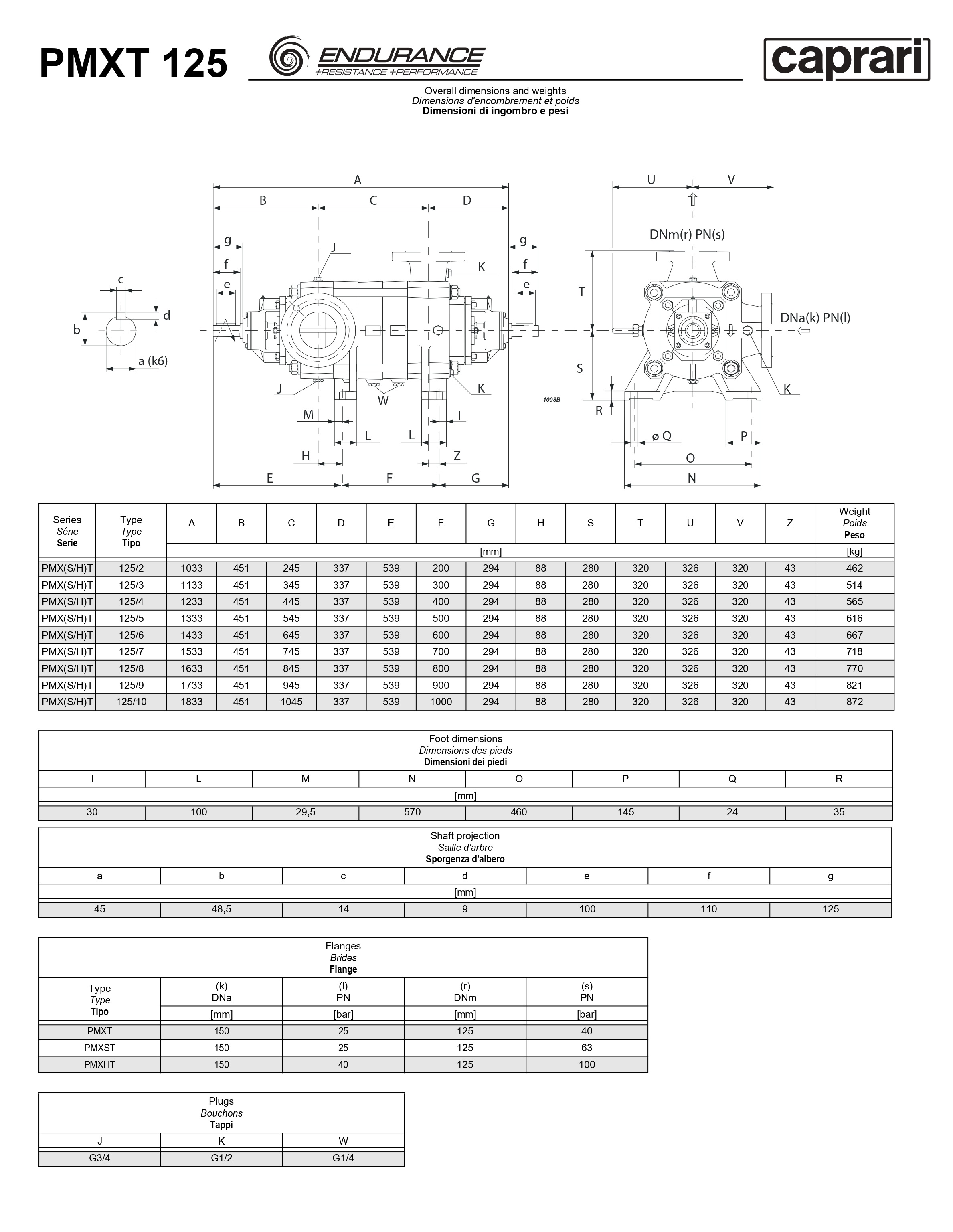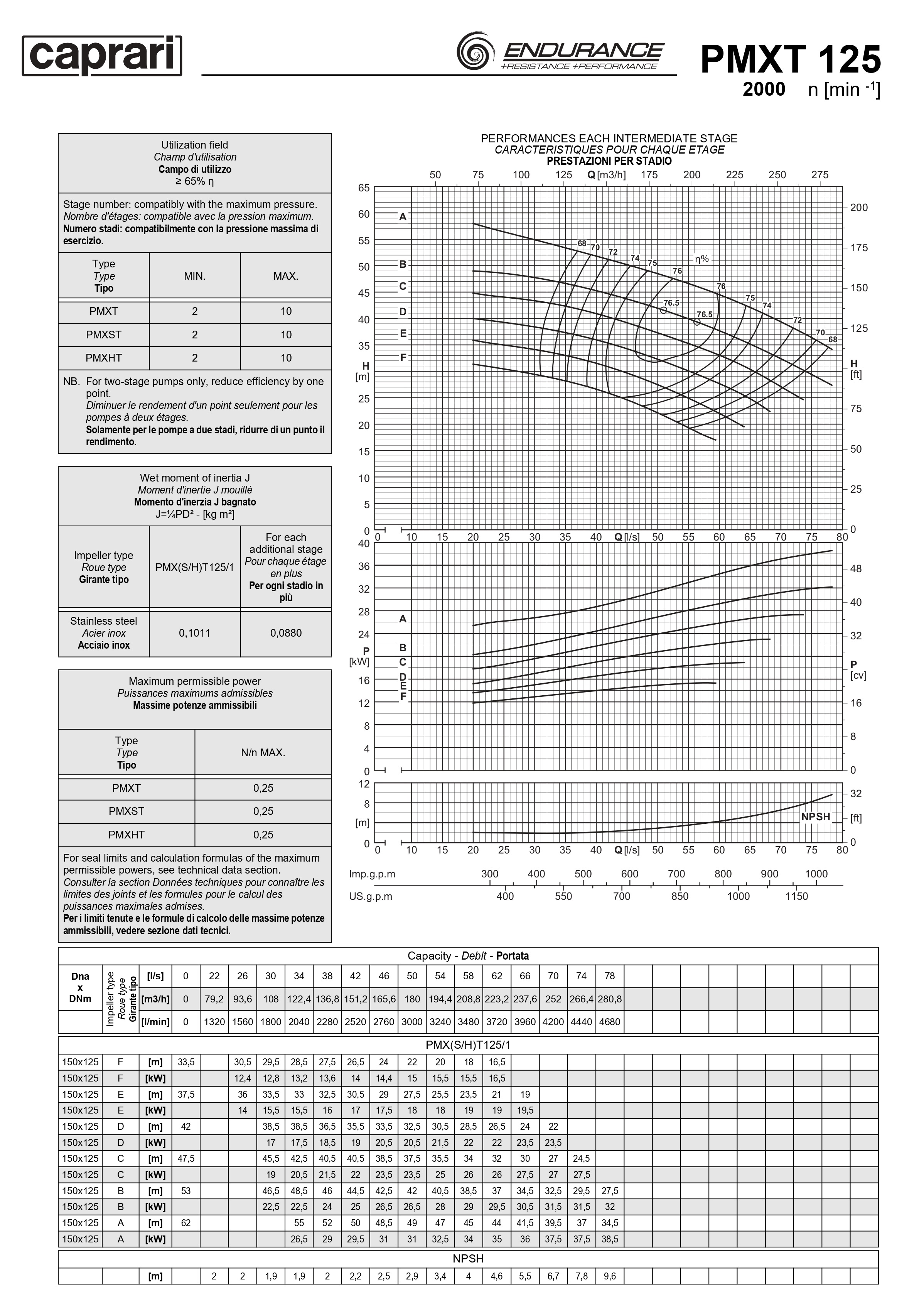 Горизонтальные секционные насосы высокого давления Caprari PMXT 125 2000 из нержавеющей стали