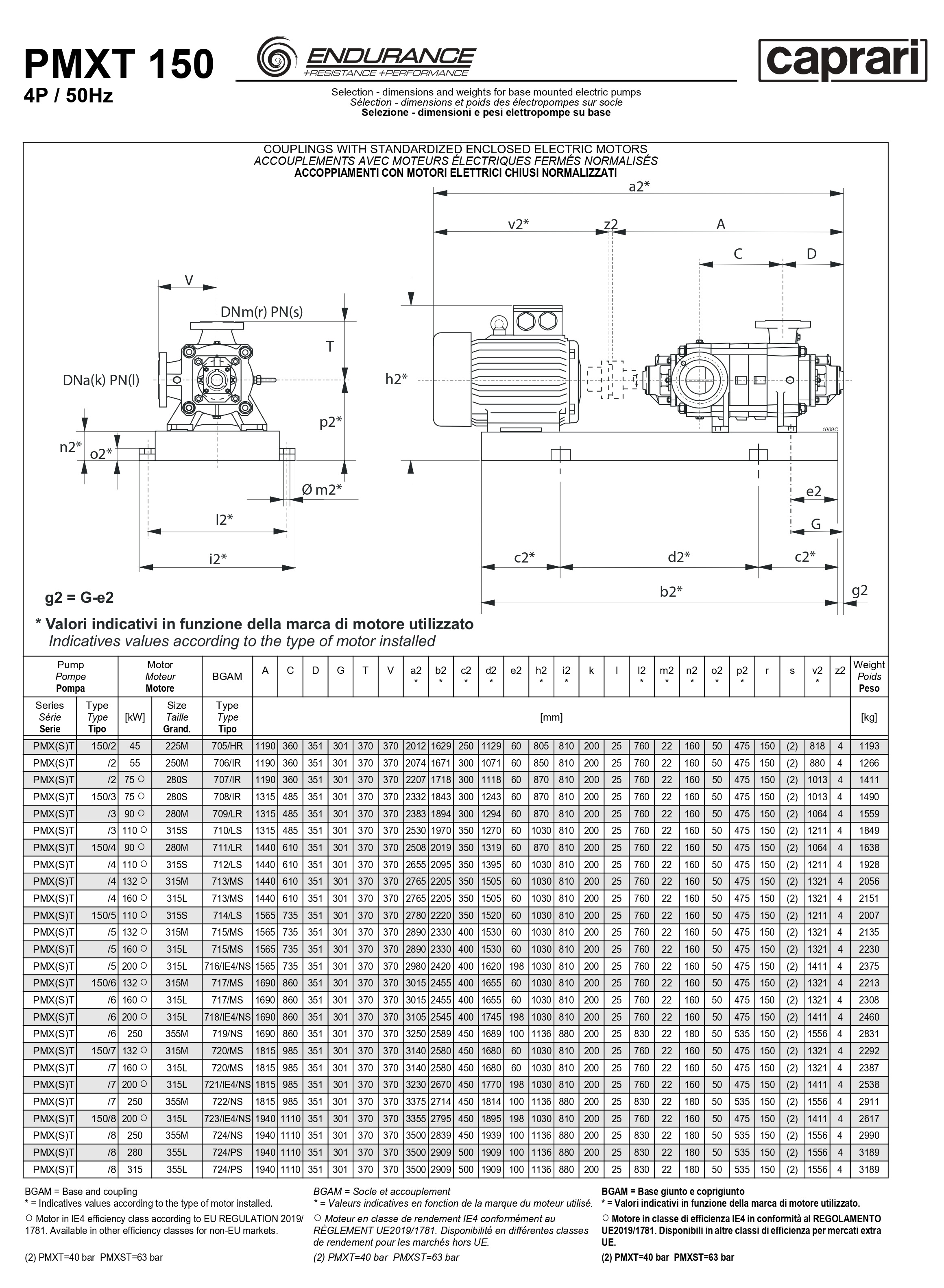 Горизонтальные секционные насосы высокого давления Caprari PMXT 150 1150 из нержавеющей стали