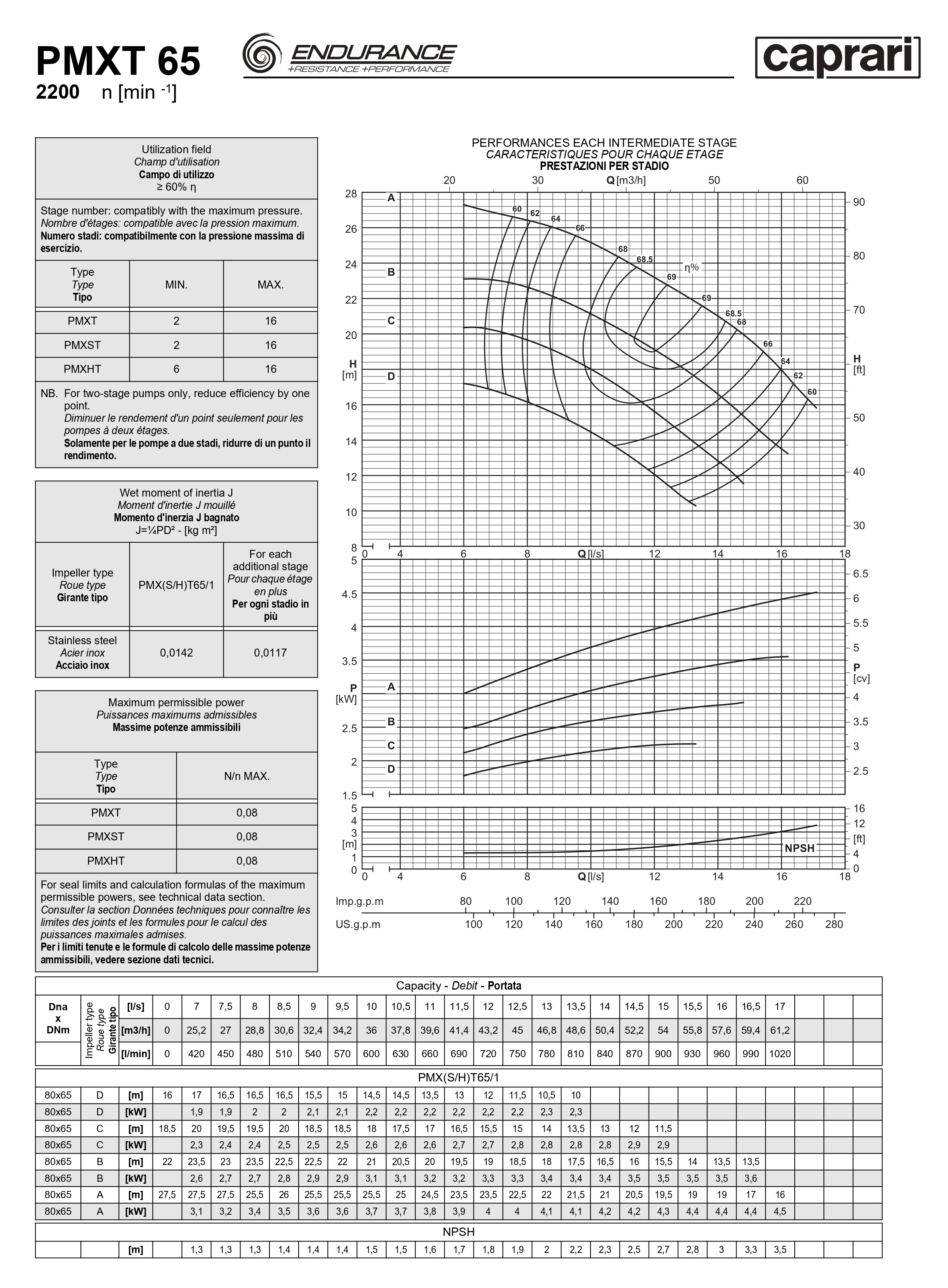 Горизонтальные секционные насосы высокого давления Caprari PMXT 65 2200 из нержавеющей стали