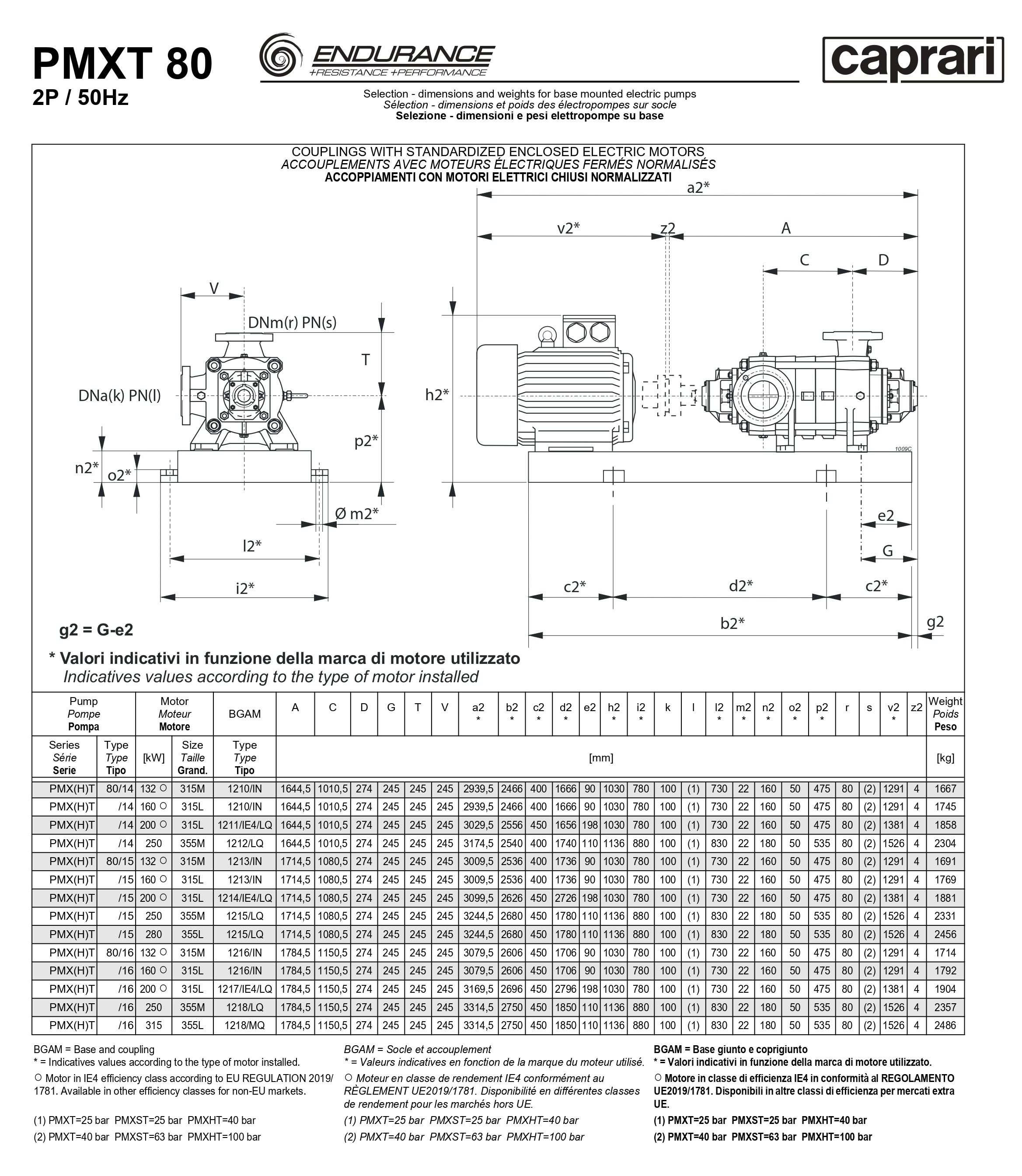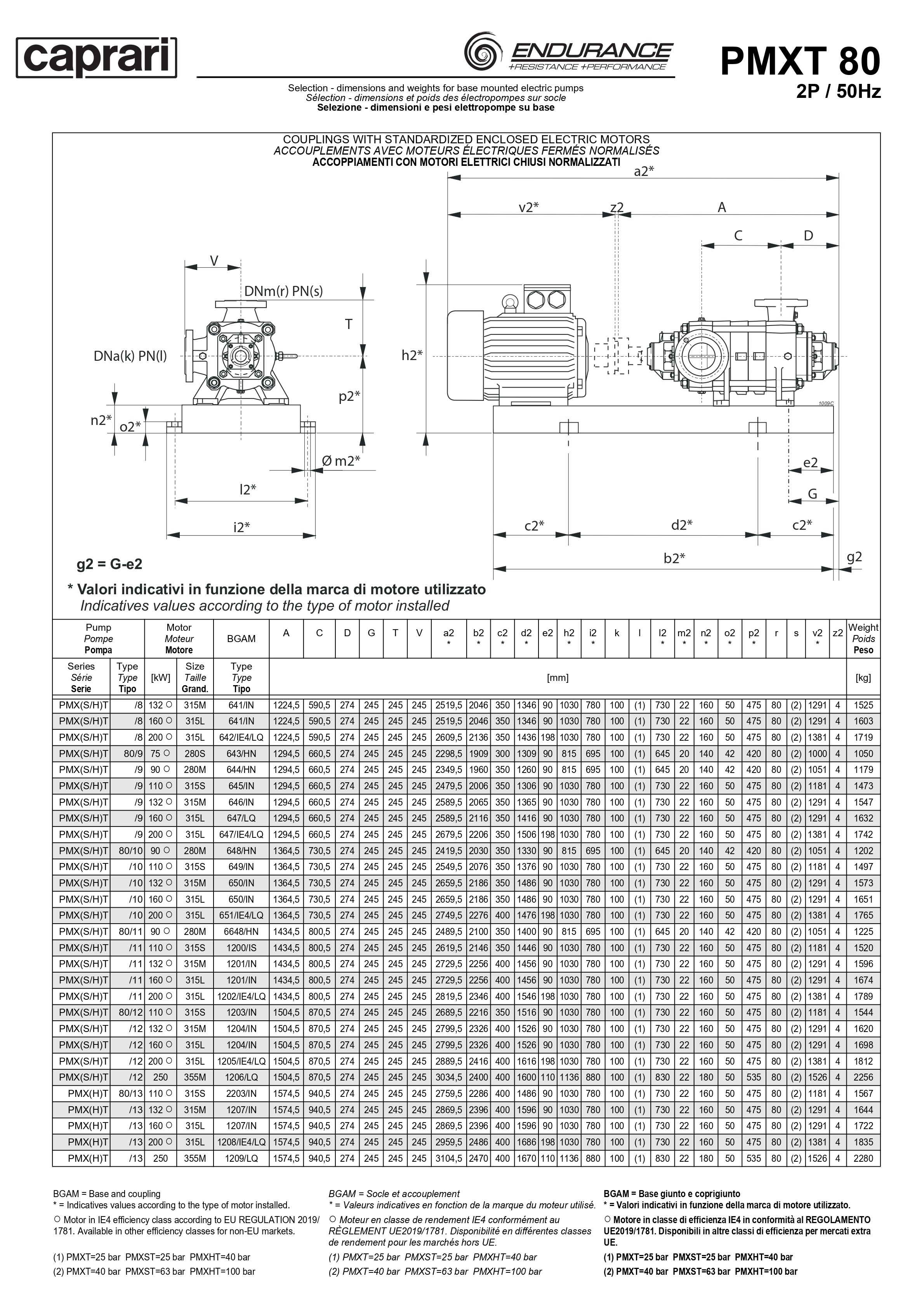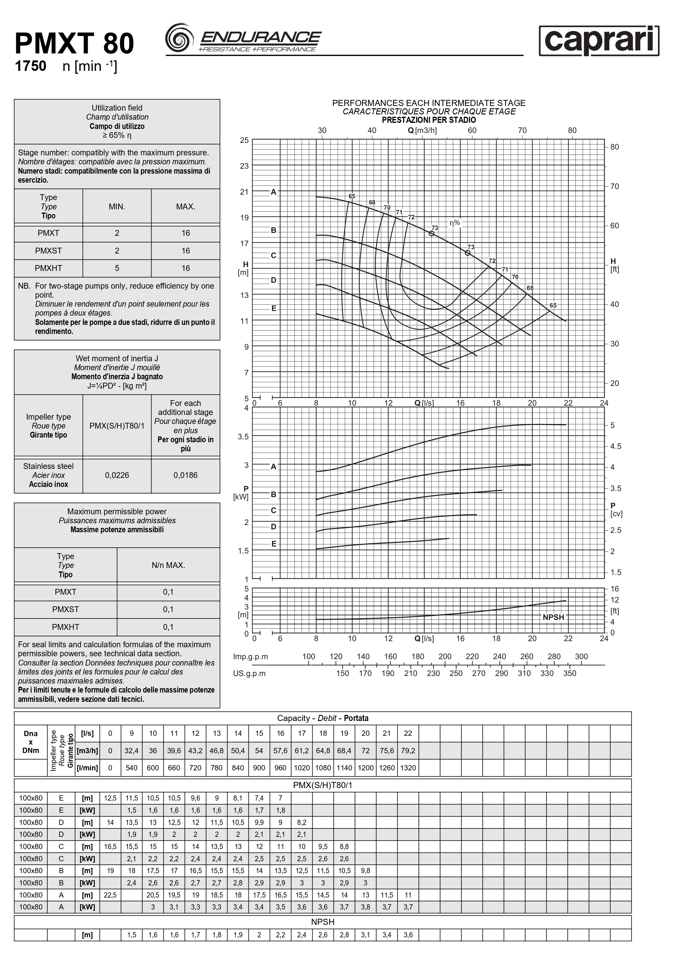 Горизонтальные секционные насосы высокого давления Caprari PMXT 80 1750 из нержавеющей стали