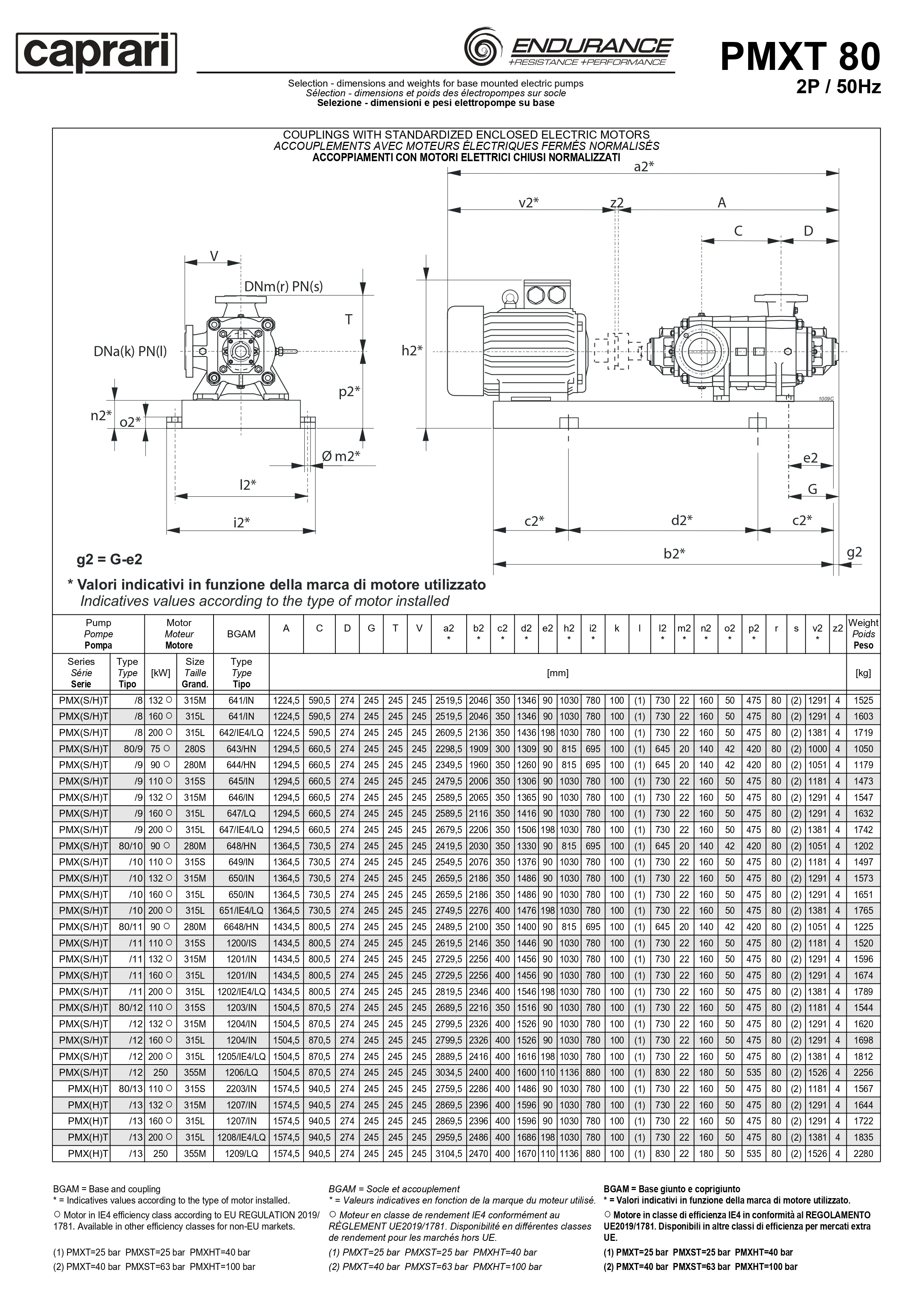 Горизонтальные секционные насосы высокого давления Caprari PMXT 80 2200 из нержавеющей стали