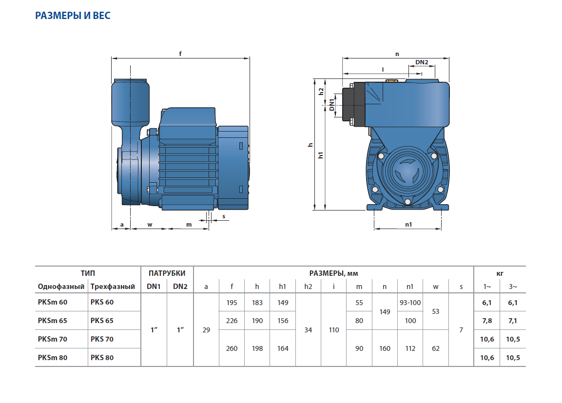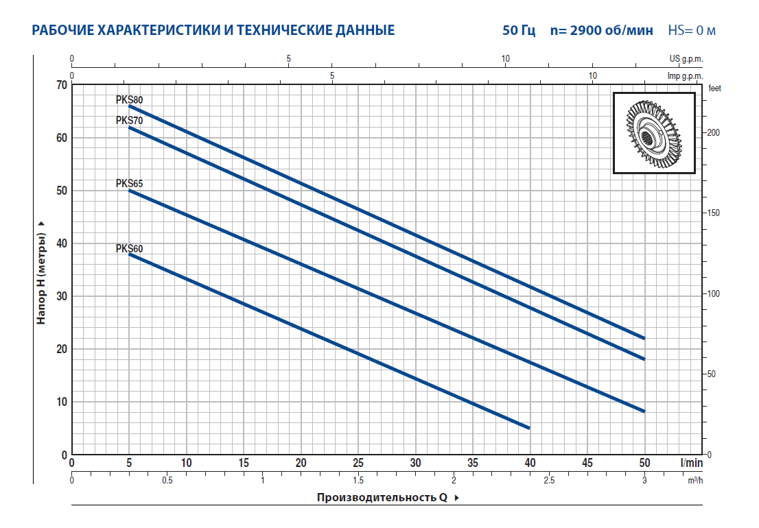 - Максимальное давление в корпусе насоса: 6 бар в PKS 60, PKS 65; 7 бар в PKS 70, PKS 80