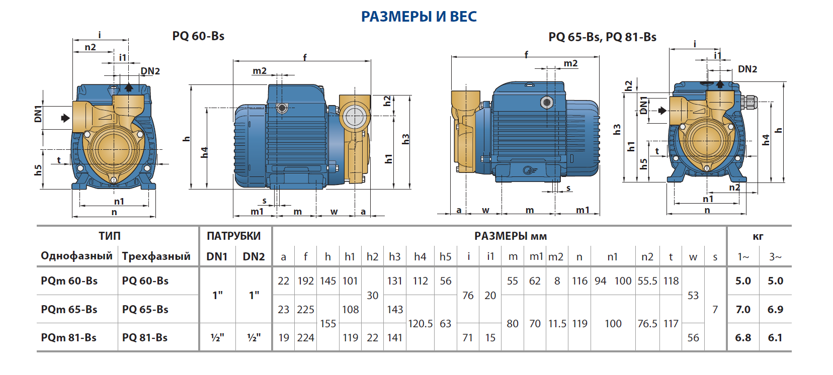 Pedrollo PQ 81-Bs - компактный трехфазный поверхностный насос вихревого типа. Рекомендуется для перекачки чистой, без абразивных частиц, воды и жидкостей, химически неагрессивных по отношению к конструкционным материалам, из которых изготовлен насос. Применение латуни в конструкции насоса Pedrollo PQ 81-Bs предотвращает образование ржавчины и окисление.